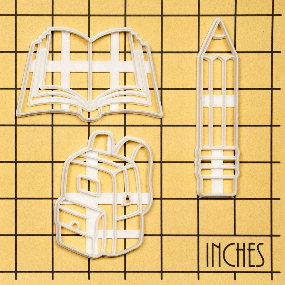 Back to School Cookie Cutters Set - Pencil Book Backpack Graduation Class