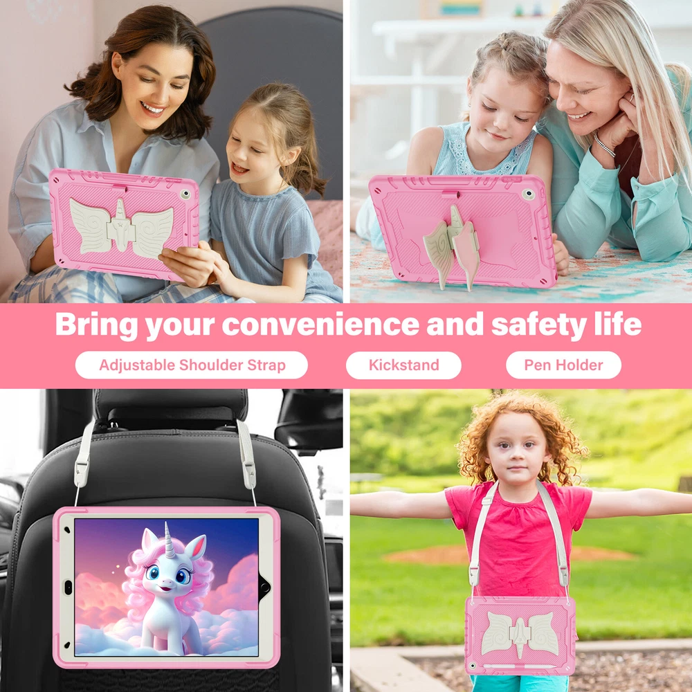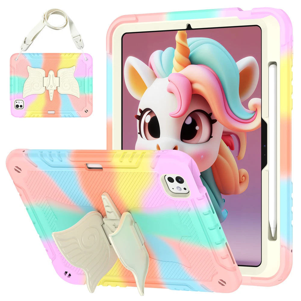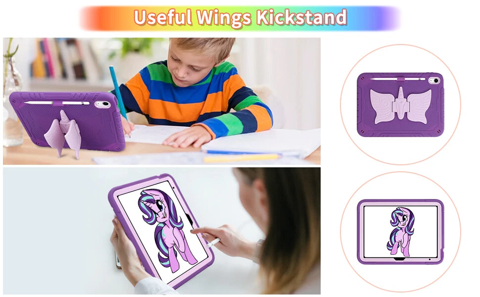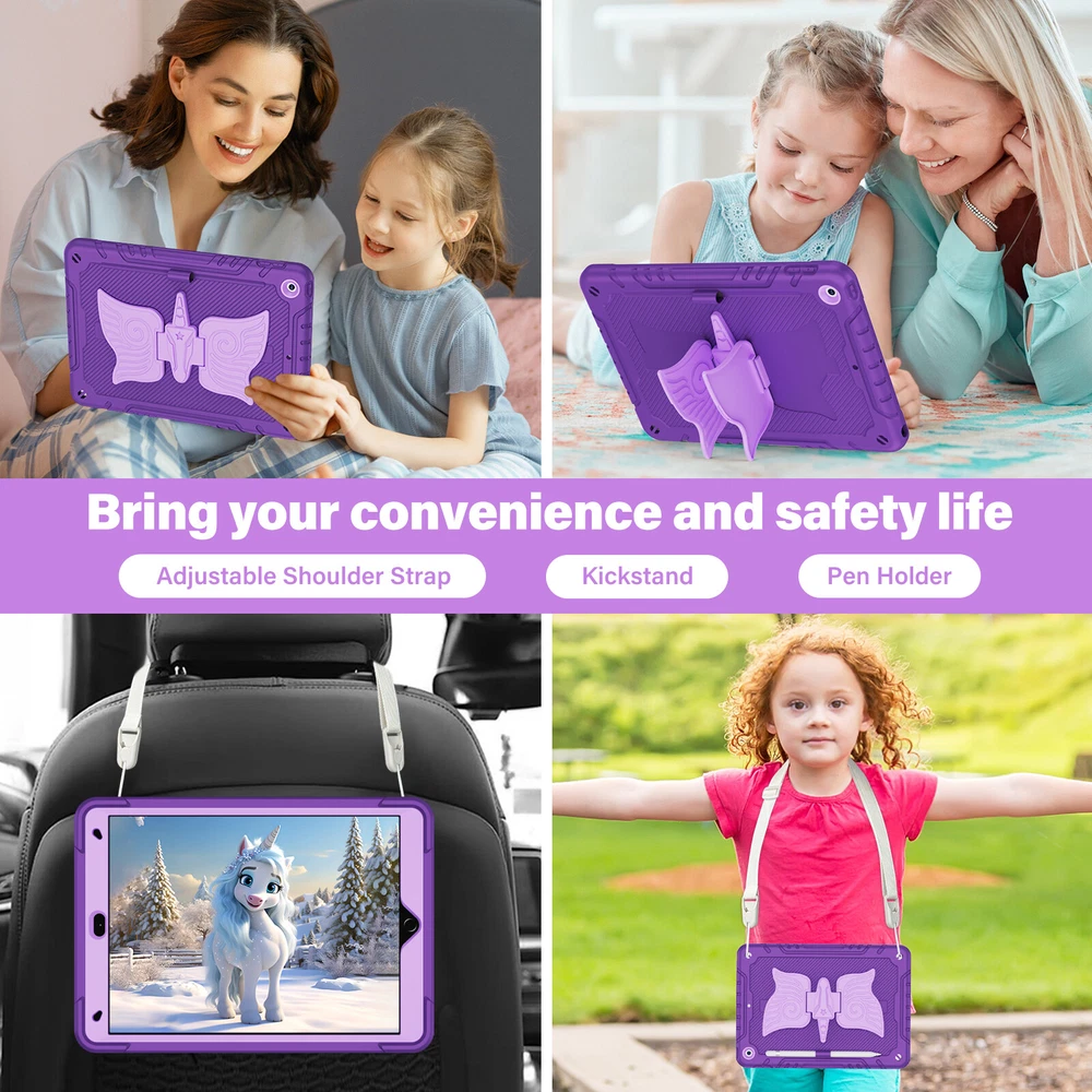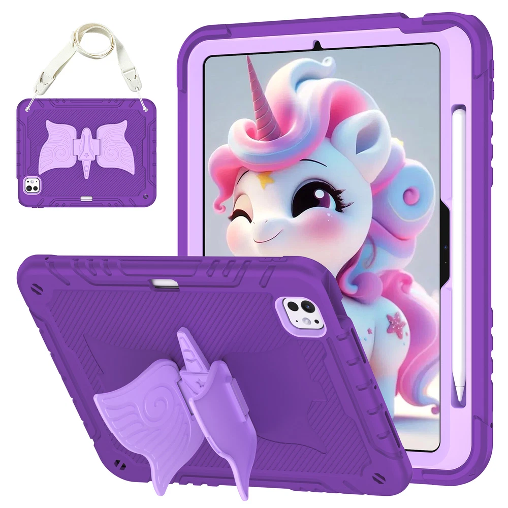 Description: -- 100% Brand New and High Quality --Exclusively Designed : This case kids Premium Soft silicone rubber and hybrid hard PC + front hard PC bumper 2 in 1 design easier to install and remove,no need to disassemble it when charging. --Special Kickstand: The kickstand on this iPad case shaped like a animal, with its wings spread out, creating a lively appearance, it also allows you to easily position your iPad in a horizontal viewing, providing a stable and adjustable stand for various activities, like reading, typing, browse websites or have video calls with friends. --Removable Shoulder Strap : This case not only features a sturdy kickstand but also comes with a shoulder strap and pencil holder. It provides both protection and kickstand function while considering the need for mobility, you can comfortably hang it on your shoulder and enjoy the convenience of using your iPad. --With Pencil Holder: Cases built-in Pencil holder allows you to store and carry your Apple pencil easily.(Pencil not included) --Precision Cut: case is precision cut to fit the tablet perfectly. --Christmas gift: The tablet case is unique, bringing joy to every child and making it more convenient for them to use tablets in their daily life which will be a practical present for kids girls boys Fit For: For iPad 7th Gen (10.2" 2019) A2197/A2198/A2199/A2200 For iPad 8th Gen (10.2" 2020) A2430/A2429/A2428/A2270 For iPad 9th Gen (10.2" 2021) A2602/A2603/A2604/A2605 For iPad 10th Gen (10.9" 2022) A2696/A2757/A2777 For iPad 11th Gen (11" A16) 2025 For iPad Air 11 M2 (2024) For iPad Air 11 M3 (2025) For iPad Pro 11 M4 (2024) For iPad Pro 11 M5 (2025) Package include : 1x Case Cover For iPad( Case Only, iPad, Pencil and Screen Prot ector Not Included )