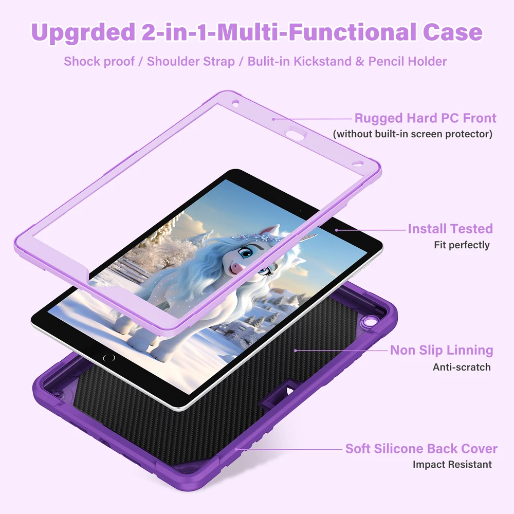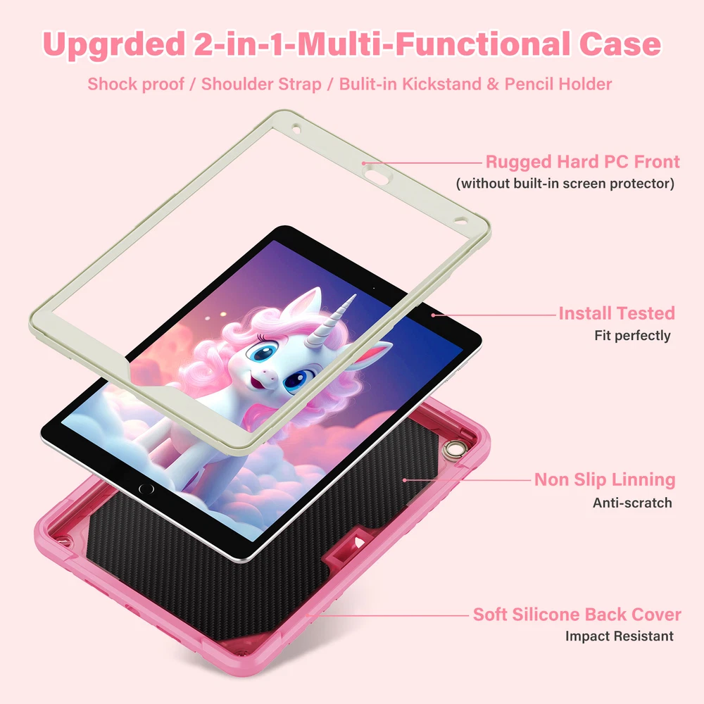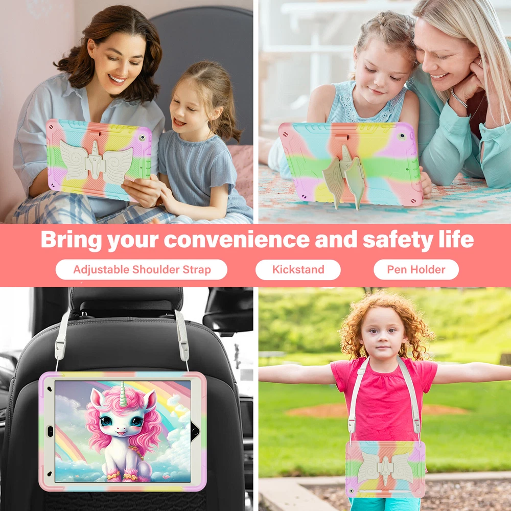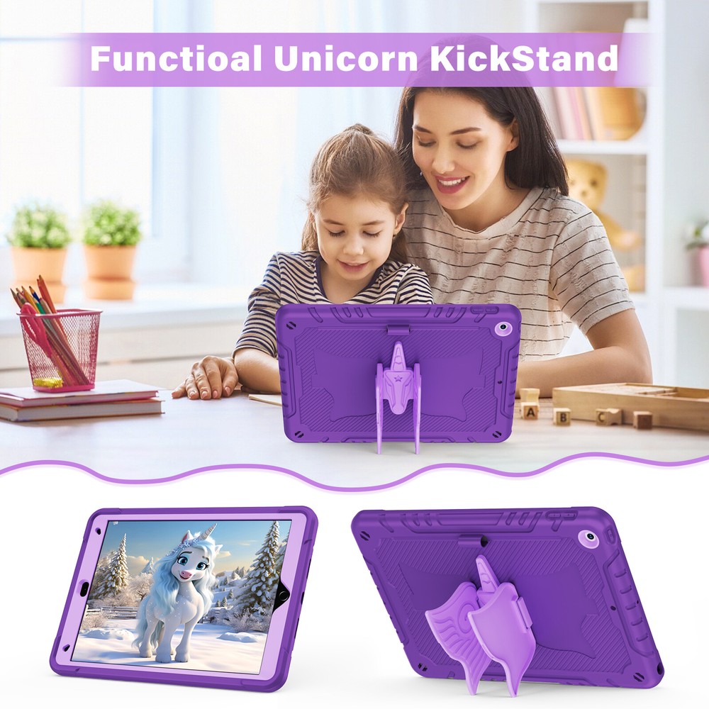 Description: -- 100% Brand New and High Quality --Exclusively Designed : This case kids Premium Soft silicone rubber and hybrid hard PC + front hard PC bumper 2 in 1 design easier to install and remove,no need to disassemble it when charging. --Special Kickstand: The kickstand on this iPad case shaped like a animal, with its wings spread out, creating a lively appearance, it also allows you to easily position your iPad in a horizontal viewing, providing a stable and adjustable stand for various activities, like reading, typing, browse websites or have video calls with friends. --Removable Shoulder Strap : This case not only features a sturdy kickstand but also comes with a shoulder strap and pencil holder. It provides both protection and kickstand function while considering the need for mobility, you can comfortably hang it on your shoulder and enjoy the convenience of using your iPad. --With Pencil Holder: Cases built-in Pencil holder allows you to store and carry your Apple pencil easily.(Pencil not included) --Precision Cut: case is precision cut to fit the tablet perfectly. --Christmas gift: The tablet case is unique, bringing joy to every child and making it more convenient for them to use tablets in their daily life which will be a practical present for kids girls boys Fit For: For iPad 7th Gen (10.2" 2019) A2197/A2198/A2199/A2200 For iPad 8th Gen (10.2" 2020) A2430/A2429/A2428/A2270 For iPad 9th Gen (10.2" 2021) A2602/A2603/A2604/A2605 For iPad 10th Gen (10.9" 2022) A2696/A2757/A2777 For iPad 11th Gen (11" A16) 2025 For iPad Air 11 M2 (2024) For iPad Air 11 M3 (2025) For iPad Pro 11 M4 (2024) For iPad Pro 11 M5 (2025) Package include : 1x Case Cover For iPad( Case Only, iPad, Pencil and Screen Prot ector Not Included )