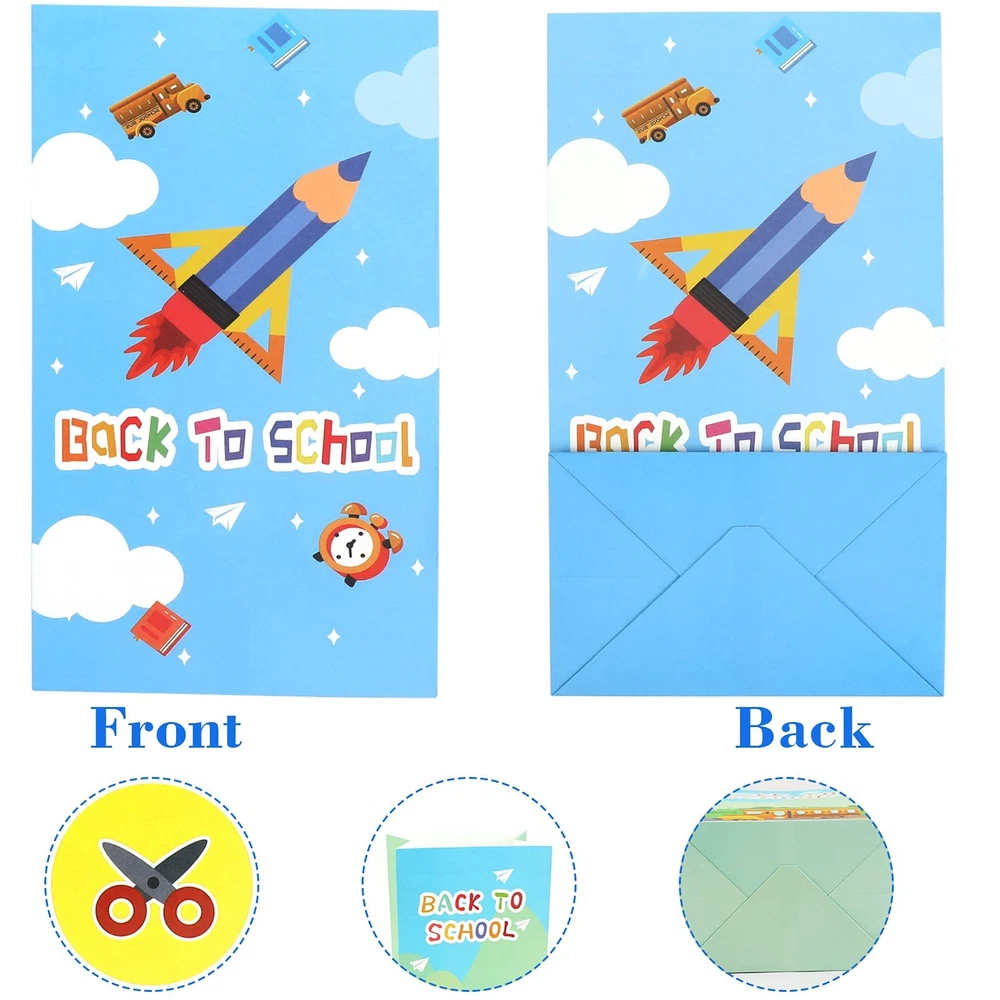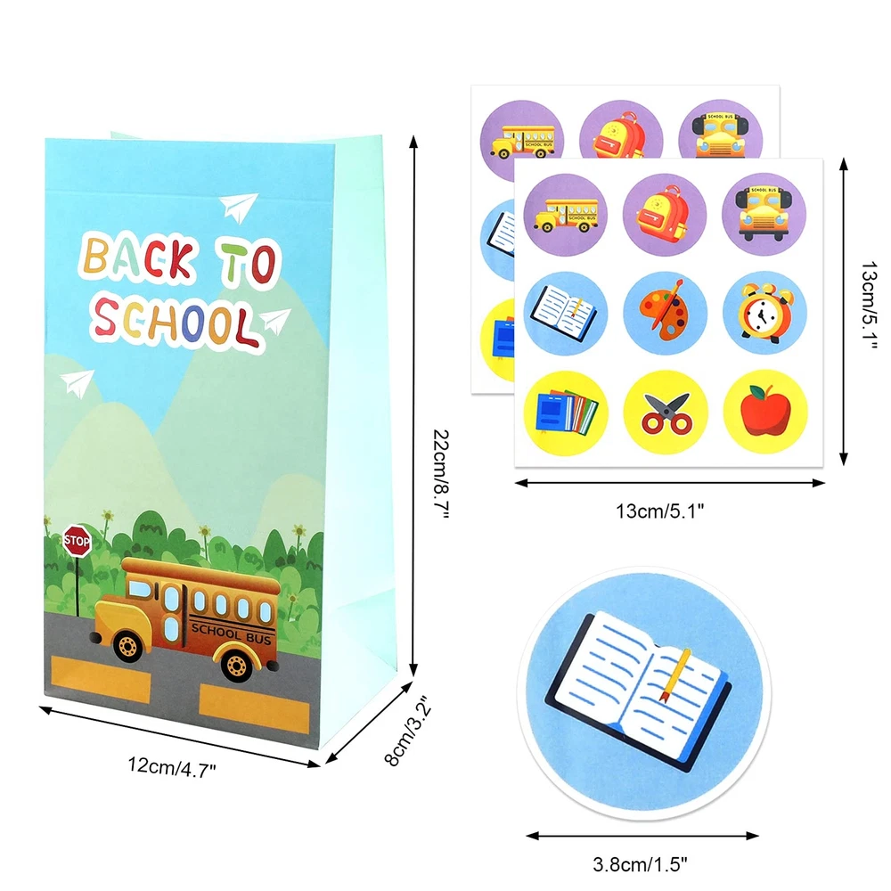 Amazing Deals Await! Welcome to my stores, The Smart of your choice and satisfaction guarantee. Back to School Gift Bags, First Day of School Classroom Party Decorations 12 pcs Goodie Bags Candy Treat Bags Gift Wrapping, Perfect for Back to School Decorations Supplies Product Overview Product Features - 12 pcs high quality Back to School bags -4 designs - Bag Size: 8.7*4.7 inch What You Receive - 12 x Paper Back to School Gift Bags - 18 x Back to School stickers Key Features 【ADORABLE Back to School PARTY BAGS】 Includes 12pieces paper-made goodies bags and 18 pieces of Back to School stickers . Super cute as shown, our Back to School party bags are great for containing candy, goodie or other small objects. 【STURDY & REUSABLE 】Our Back to School gift bags are made from high-quality thick cardstock paper. Each gift bag has a reinforced bottom so that it can hold more small objects of the party. safe and recyclable, strong enough for kids to hold any assorted knick-knacks, toys when being carried and no smell. 【Size】Each Back to School gift bag measures 8.7*4.7*3.2inch,4 Assorted Styles * 3 each. Good size to hold party favors or gifts, little toys, biscuits, candies, Chips, Popcorns, and Cookies, etc , so easy to use with sticker closures. 【Wide Applications】 - It's great for back to school gift bags, back to school cellophane bags, cellophane treat bags, cellophane goody bags, cookie bags, candy bags, back to school snack bags, etc. Cookie Gift bags are great to match welcome back to school party, home party, birthday part and so on. Let the students feel your blessing and have happy party time. 【Buy With Confidence】 It will definitely add more fun to your Back to School party! Any problem just email us, More Back to School decoration party supplies favors gift please visit storefront. Payment Guidelines ⦿ Payment is processed through eBay's secure system. ⦿ We accept PayPal and major credit cards. Shipping Information ⦿ We ship to the address provided at checkout. Please verify your address before placing your order. ⦿ Orders are processed within 1 business day (excluding weekends and holidays). ⦿ Delivery typically takes 3-5 business days. ⦿ We use reliable carriers such as UPS, FedEx, and USPS. ⦿ Shipping is available only within the contiguous United States. No shipping to Alaska, Hawaii, Puerto Rico, or PO Boxes. ⦿ If you experience any delays, please reach out to us for assistance. Return Policy ⦿ We offer a 30-day money-back guarantee. ⦿ If you're not satisfied with your purchase, you can return it for a full refund. ⦿ Please contact us for the return address before sending any items back.
