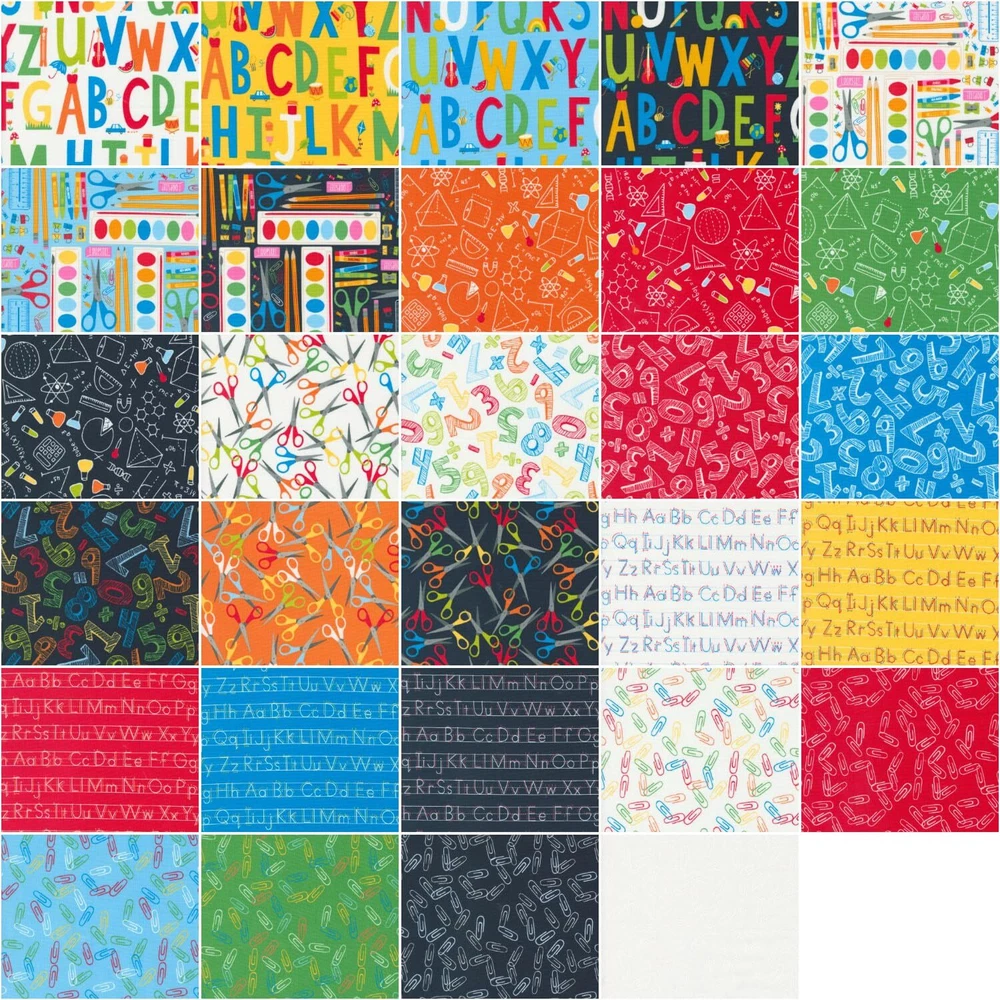 Fabric roll of 40 2.5-inch by 44-inch (width of fabric) strips from the Back to School collection by designer Stacy Iest Hsu for . What better way to make learning fun than with bright colors and fun school supplies? When creating Back to School, color and fun were a must. Back to School celebrates all things “school," like writing, science, math, and -- my favorite -- arts and crafts. This collection is sure to make going back to school a whole lot more fun. Back to School collection from Designed by Stacy Iest Hsu Jelly Roll includes 40 2.5-inch by 44-inch strips 100% Cotton; premium quilt shop quality fabric