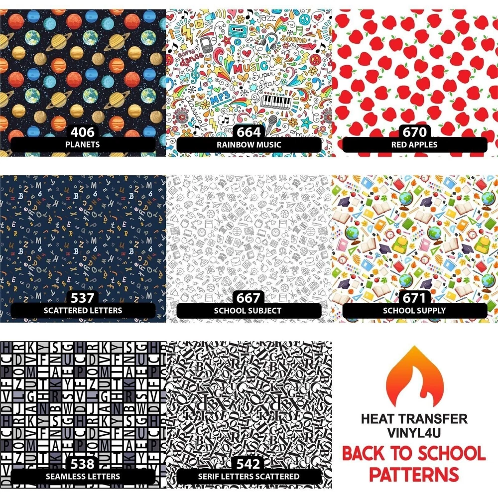 Patterned Adhesive Vinyl Printed on Orajet 3164 (No Transfer Tape Provided) *All patterns are printed as shown in the swatches. • HTV4U Patterned Adhesive Vinyl is the perfect media for your needs! • Great to use on glass, metal, plastic and much more! • Cut on Pattern Side and DO NOT MIRROR . After weeding excess vinyl, apply a transfer tape to transfer design off of the backing and place on your surface. • We have a tons of variety and colors for you to choose from! • Quantity discounts available! *This product is excluded from all promotional discounts and offers. ORDER DESCRIPTION CUTTER SETTINGS Cricut: Blade: Standard Setting: Iron On Silhouette Cameo: Blade: Standard, 3 Material: Heat Transfer, Smooth Speed: 8 Force: 6 Scan N Cut: Blade: Standard, 2 Cut Speed: 1 Cut Pressure: 1 Roland GS/GX-24: Blade: 45° Gram Force: 80-90 Offset: 250 Speed: 25-50 cm/s Graphtec: Blade: 45° Gram Force: 9 Tool: CB09U+0 Speed: 25 cm/s MH, SC2, LP3, & Titan 1: Blade: 45°/60° Gram Force: 80-85 Speed: 300mm/s *Blade Advancing Varies Titan 2 & 3 Blade: 45°/60° Gram Force: 60-65 Speed: 300mm/s *Blade Advancing Varies Settings may vary based on blade condition and age of machine. Always perform a test cut prior to cutting designs. RECOMMENDED ACCESSORIES & CARE Recommended Accessories: Tweezer Adhesive Application Tape