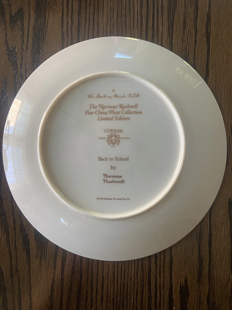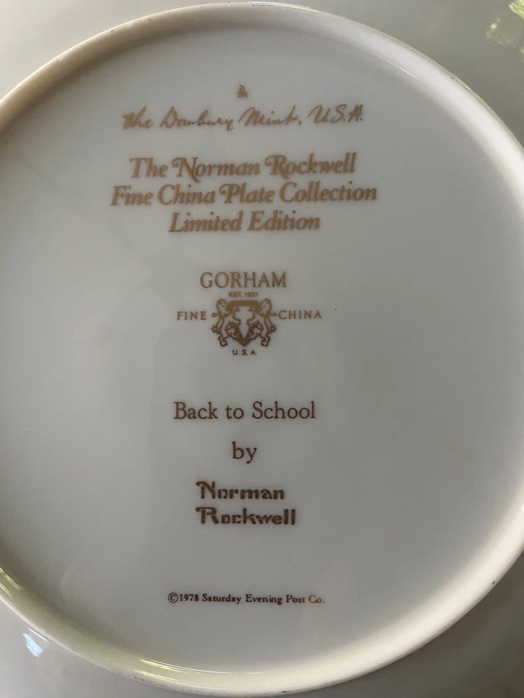 Collector Plate Norman Rockwell Back to School Danbury Mint Gorham 1978 No Box Pre-Owned but in good condition. No cracks or chips. Light normal wear. No Box. PLEASE SEE PHOTOS FOR CONDITION AND DETAILS