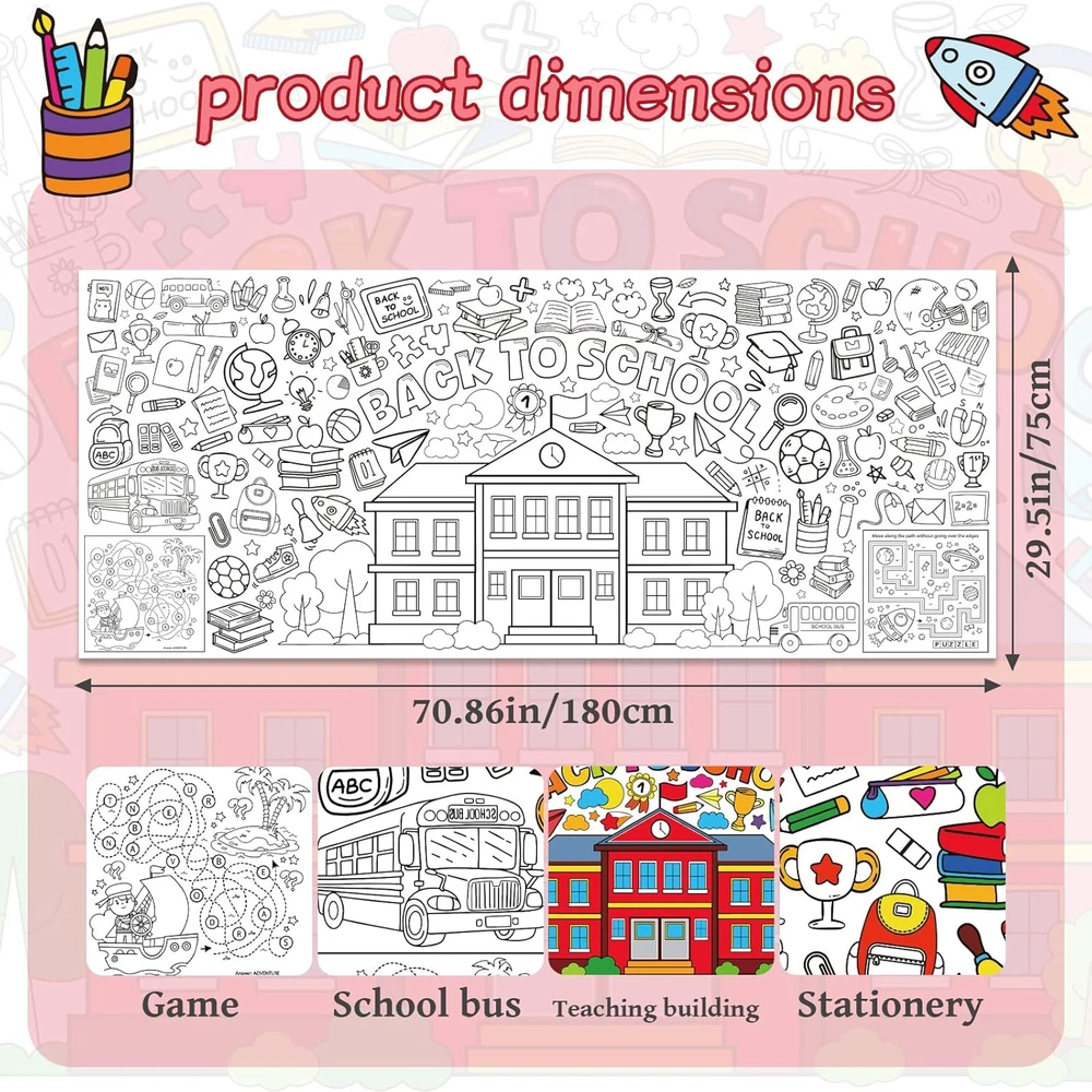 Back to School Party Decorations - 29.5 X 71 Inch Welcome Back to School Giant Coloring Poster Decoration, Football Basketball Book Large Multipurpose Coloring Tablecloth for Kids Product Description Back to School Theme: This large coloring banner features fun school elements like books, footballs, and pencils, making it an exciting and cheerful decoration for the classroom or party events Oversized for Group Play: Measuring 29.5 x 71 inches, the jumbo size allows multiple kids to color at the same time, perfect for group classroom activities or playtime bonding Creative First Day Activity: A fun and interactive way to welcome kids back to school, this poster doubles as an icebreaker and memory-making activity for students and teachers alike Inspires Imagination: Designed to encourage group creativity, it keeps kids entertained while helping them build cooperation and artistic expression from day one Multiple Uses: Great as a classroom coloring sheet, party tablecloth, wall poster, or background for welcome photos, making it a versatile addition to any school setup Product Description Large Coloring Poster - Giant Coloring Tablecloth Perfect for Kids Birthday Party Decorations . Weight: 4.5 oz . PAYMENT We accept all payments via Ebay using Credit Cards , PAYPAL , Apple Pay and many others SHIPPING We are always working hard to ensure your package arrives as soon as possible. Please understand that some factors like weather, high postal traffic, and the performance of shipping companies are outside of our control. DELIVERY & RETURN POLICY We offer a 30-Day Return Policy on items in which you are not completely satisfied with. You have the option of a full-refund or an exchange of the item. No returns are available on items shipped outside of the USA. © 2025 [Kusiworld]. All Rights Reserved.