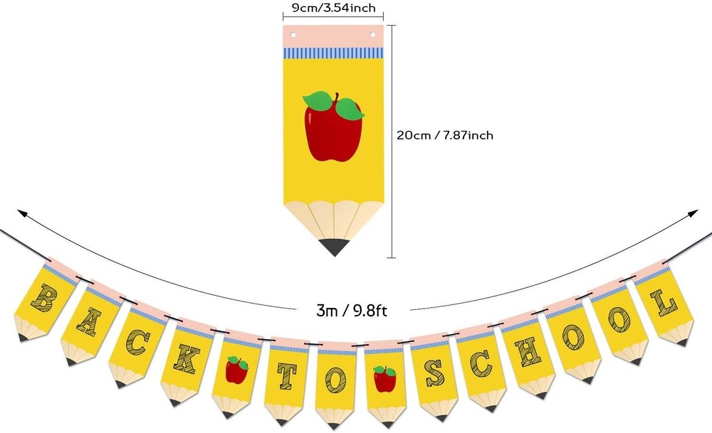 Free eBay listing template designed by dewiso.com Back to School Pencil Banner - First Day of School Banner - Back to School Banner - Classroom Decor - Teacher Banner - Back to School Party Decorations FREE AND FAST SHIPPING! About this item Back to School Pencil Banner - Pencil shape card stocks, printed with cute red apple. Material: Made of premium card stock, sturdy enough to use many times, you can have it for next year or give it to friend to make best use of it. Size: Each pencil measures approx 3.54" x 7.87", and the rope is 3 meters long, each garland contains 12 cute pencils and 2 cute red apple. Special Design: To make banner special,the banner features 2 cute red apples. It is a must-have banner if you would like to do something special to welcome your students to come back. Many uses: Hang this back to school banner over the blackboard or any corner in classroom, over party back drop, add some unique decor to cheer up your important moment! Product We offer a 30-Day Return Policy on items which you are not completely satisfied with. You have the option for a full-refund or an exchange of the item. No returns are available on items shipped outside of the US . Shipping We offer Free Shipping to the US and ship within 2 business days of payment, usually sooner. We use UPS express shipping. That's why your products are usually delivered within 3 days . Contact We try our very best to make sure every customer is completely satisfied. If there's a problem , message us! We're happy to help. 24/7 live chat available.