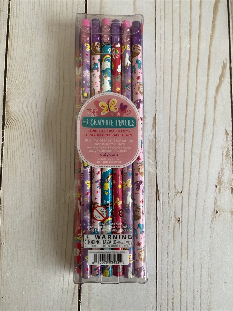 This unique set is brand new, as pictured. It is ready to ship to you from our clean, smoke free gift shop today! The spiral notebook is 8.5 “x10.5”, and has 80 sheets of wide ruled paper. The cover is plastic. The spiral journal is 6” x 8”, and has 200 pages of lined paper. It is a hardcover journal. The pencils are Ooly brand, a 12 pack with very pretty designs on them. Thank you for supporting America’s small businesses!
