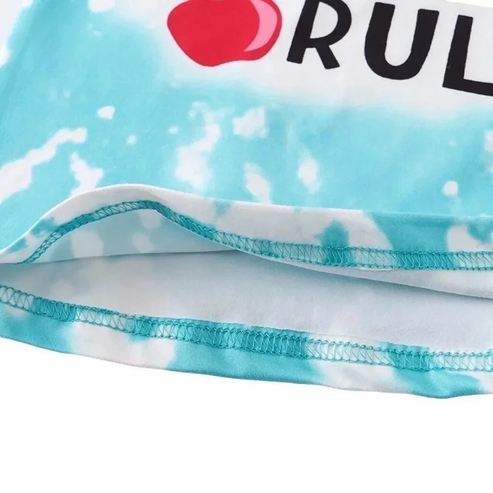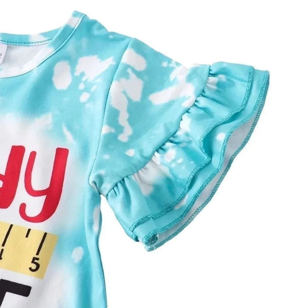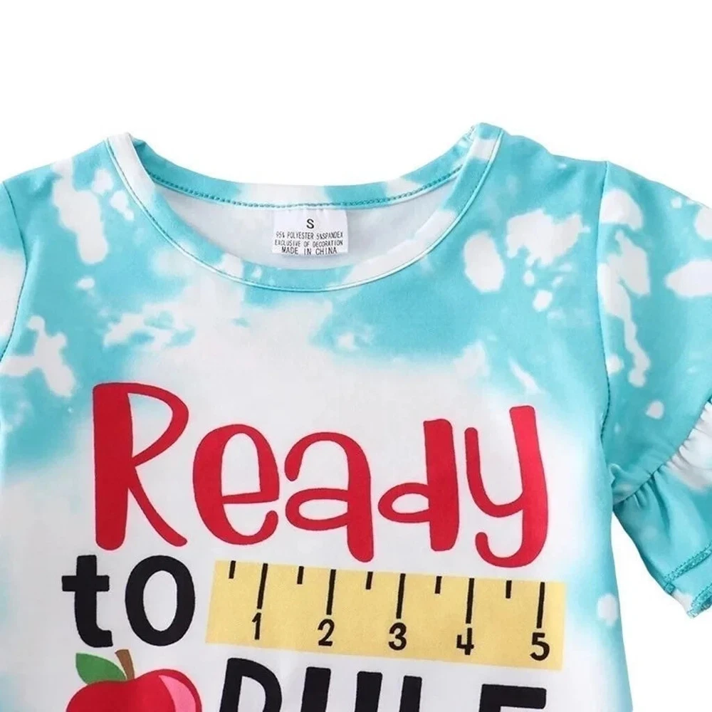 Back to School blue shirt with ruffle sleeves Ready to Rule 5T NEW Well, sugar, if this “Ready to Rule” Ruffle Sleeve Shirt doesn’t just shout “top of the class,” I’ll eat my hat! Perfect for kickin’ off a brand-new school year, it’s stitched up with 95% polyester and 5% spandex—meaning it’ll move right along with your little scholar through recess cartwheels, art class projects, and everything in between. Why It’s the Bee’s Knees, Darlin’ : Empowering Message : Because every girl deserves to rule her own world! Ruffle Sleeves : Adds just the right sprinkle of sass to brighten her day. Vibrant Blue Hue : Perfect for standin’ out in a sea of plain ol’ uniforms. Educational Motif : That apple and ruler graphic shows she’s ready to conquer those books! So go on and let her flaunt that confidence from classroom to playground. And sweet pea, don’t forget to mosey through the rest of my boutique—I’ve got plenty more treasures to tickle your fancy!