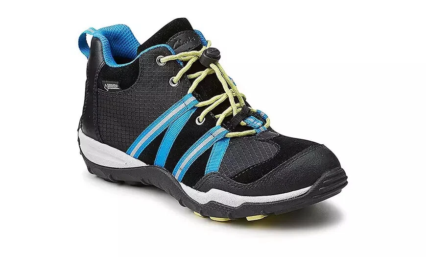 CLOSE OUT ITEM--FINAL SALE (NO RETURN) Regular:$79.99 Final Sale$24.95 BRAND NEW IN ORIGINAL BOX Highlights Gender: Boys' Materials: Synthetic Width: W Product Details Clarks Boys' Tad Go GTX Junior Sneaker For boys who want to go off the beaten track, these active ankle boots feature a great-looking design in GORE-TEX enhanced textile for a waterproof, breathable boost. A durable cleated outsole plus toe and heel guards keep feet protected, while reflective panels are an extra safety measure. Fun, fashionable, and well fit. Synthetic Fit: True to Size Features of this item include: Textile, Waterproof Clarks Boys' Tad Go GTX Junior Sneaker W Blue 2.5 Shoe Materials: Synthetic Shoe Gender: Boys' Dimensions: 5.0 inches (H) x 9.0 inches (W) x 12.0 inches (L) Weight: 32.0 ounces Clarks Boys' Tad Go GTX Junior Sneaker W Blue 3 Shoe Materials: Synthetic Shoe Gender: Boys' Dimensions: 5.0 inches (H) x 9.0 inches (W) x 12.0 inches (L) Weight: 32.0 ounces Clarks Boys' Tad Go GTX Junior Sneaker W Orange 3 Shoe Materials: Synthetic Shoe Gender: Boys' Dimensions: 5.0 inches (H) x 9.0 inches (W) x 12.0 inches (L) Weight: 32.0 ounces Made in China