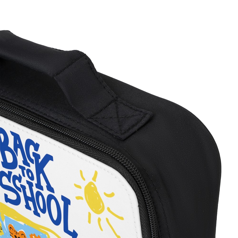 Back to school Lunch Bag Eating healthy should be a piece of cake thanks to this lunch bag for adults and kids. With a zippered closure, a convenient carrying handle, and a durable fabric made with 100% polyester, this lunch bag is made to be enjoyed on a daily basis. .: 100% Polyester .: One size: 9.5″ × 7" x 2.8″ (24 x 18 x 7cm) .: Black base with white customisable area .: Fully lined and insulated .: Blank product made in China