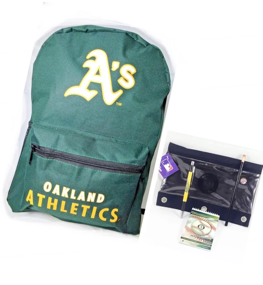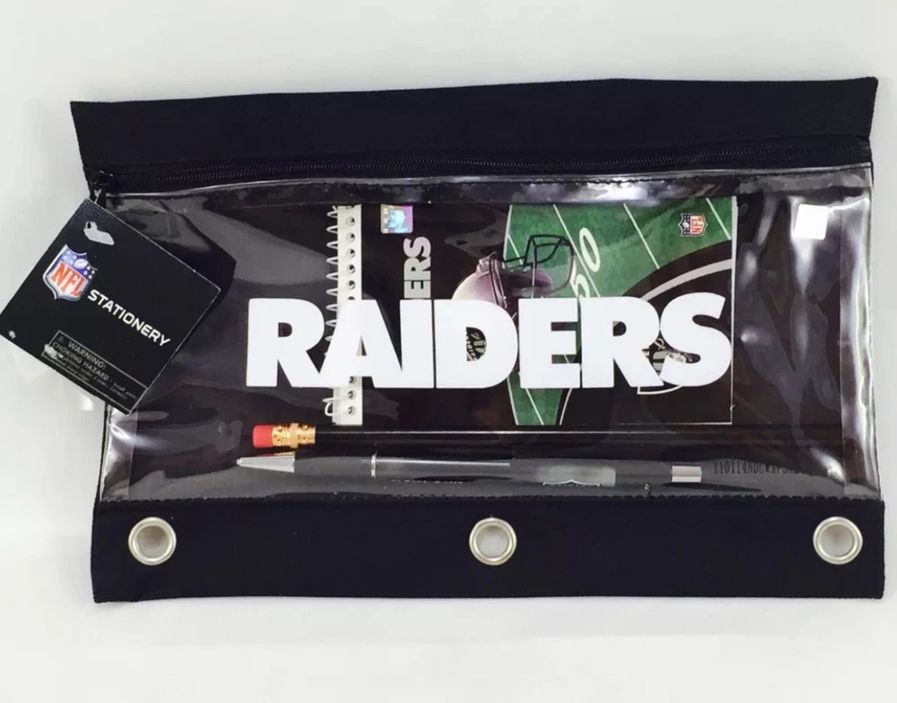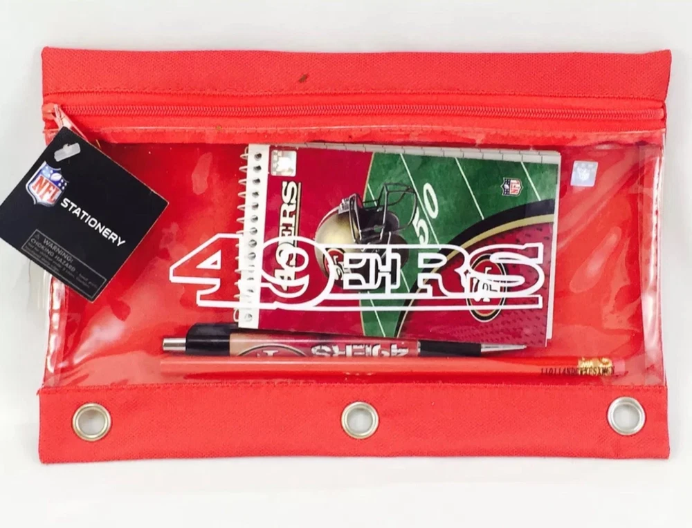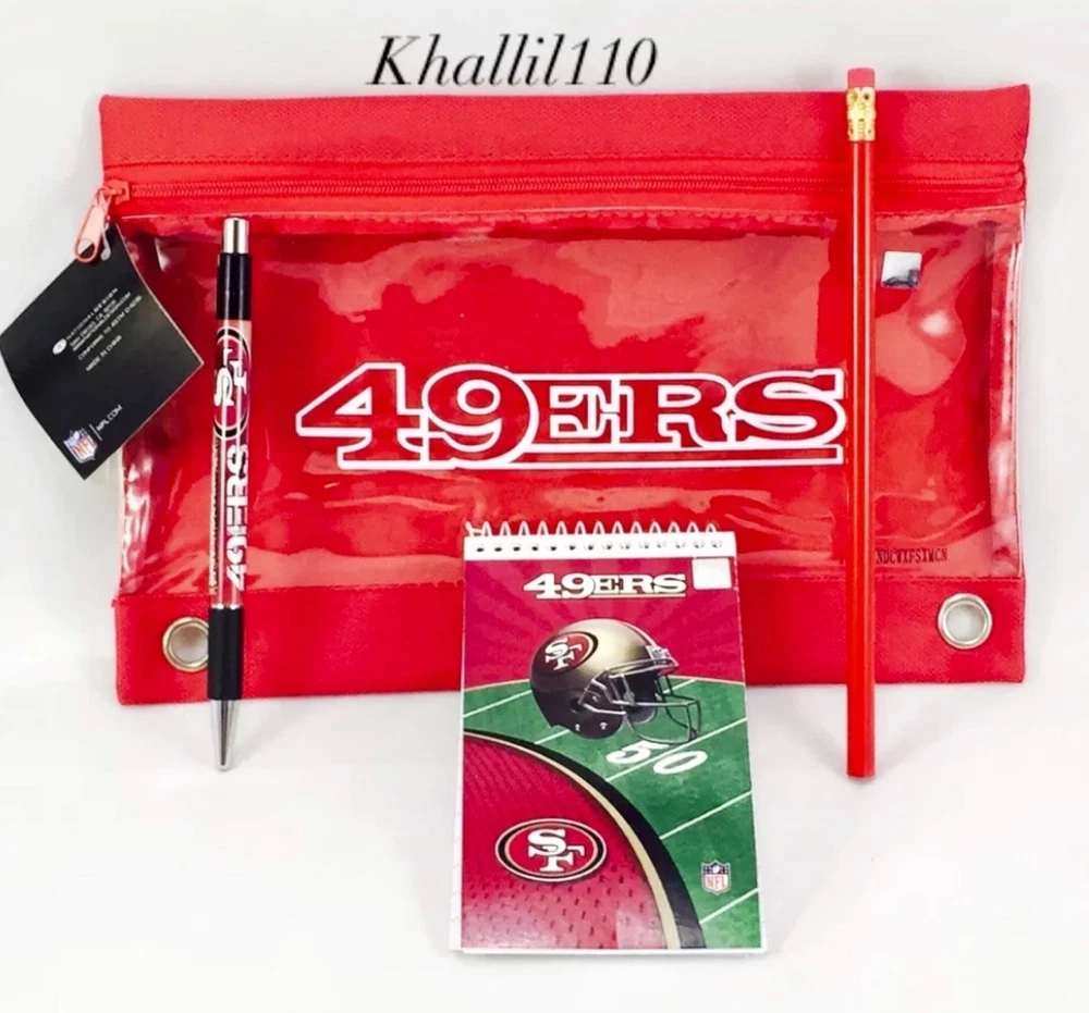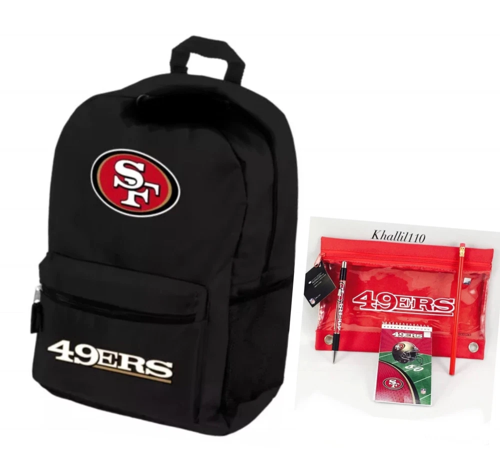 Backpack features a large main compartment, a front organizer pocket and screen printed your Team logo graphics that are sure to get your little one’s school year off to a great start. Also great for tailgating, camping and even use as a diaper bag. - Adjustable backpack straps - Backpack measures 11w” x 18h” x 6” - Screen printed graphics - Large compartment with zippered closure - Made of polyester material - Officially licensed by NFL - Organizer front pocket - Team colors and logos - Top carry handle - One mesh side pocket - Surface washable - Forever Collectibles Back To School Set (Note Book , pen , pencil , pouch) Canvas zipper pouch that contains - one 3” x 5” spiral notepad - one pencil with no imprint - one full color imprint pen. black imprint placed in the middle of the clear part on the pouch. Comes with a hangtag looped in the zipper hole. by National Design package include: one backpack and one back to school set