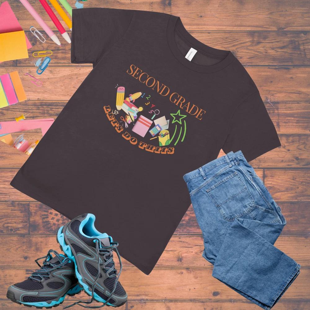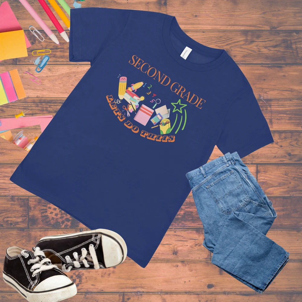 Get your little one ready to tackle the new school year with confidence in our personalized "Let's Do This" youth t-shirt! This fun and motivational tee is perfect for celebrating their next big step. Customize the shirt with the grade they're entering to make it uniquely theirs—whether it's kindergarten, first grade, or any grade up to middle school! Made from soft, breathable cotton, this t-shirt ensures all-day comfort, whether they're in the classroom or on the playground. The bold, playful design features vibrant lettering that pops against the shirt, inspiring your child to take on new challenges with enthusiasm. Available in blue, black, or gray and a range oof sizes, this tee is a great back-to-school gift that they'll love to wear. Let's do this—because a new grade means new adventures! PRODUCT DETAILS 100% ring-spun combed Cotton crew neck T-shirt classic fit. lightweight and tight-knit 4.3oz. Side-seamed with a reinforced shoulder seam. Fade-resistant print