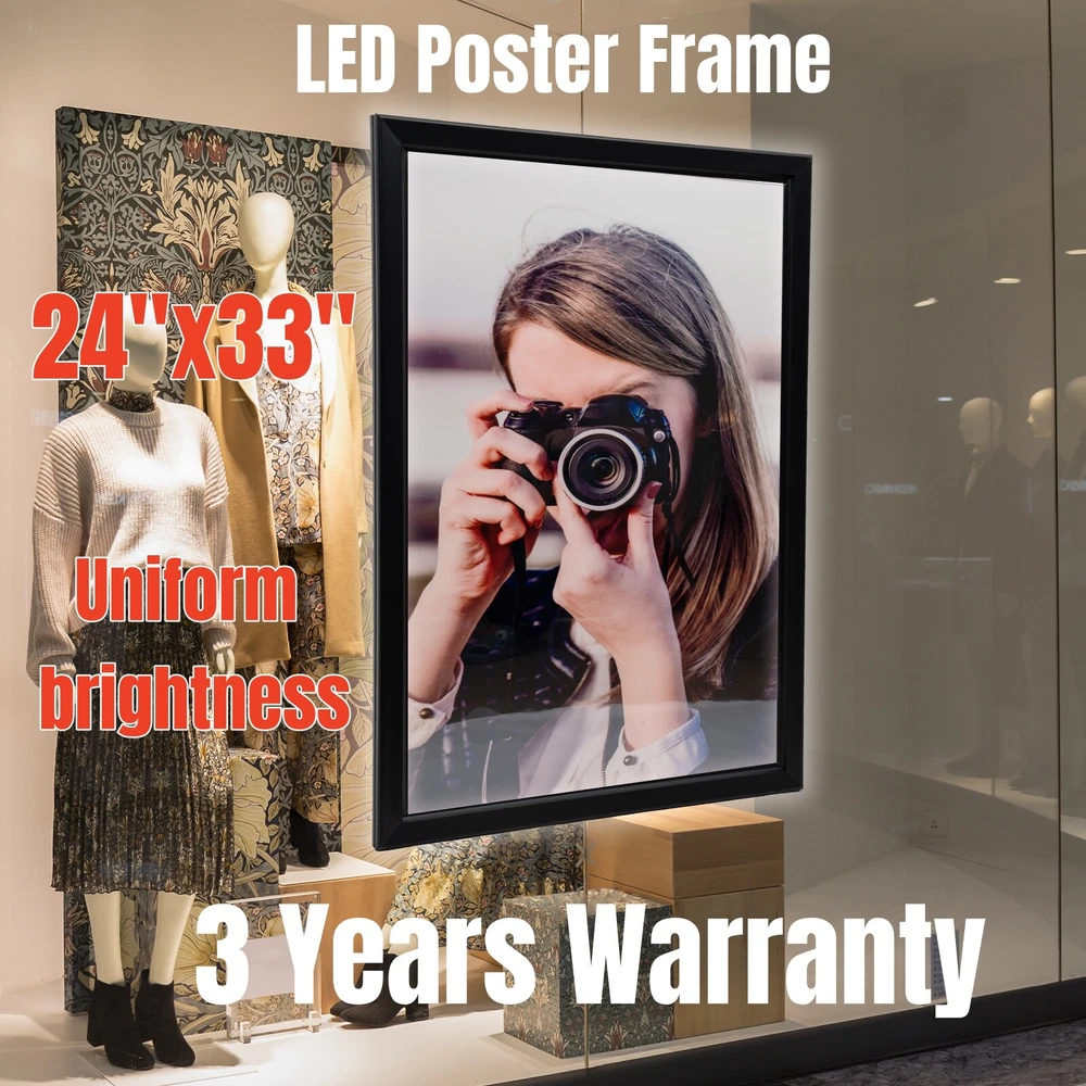 LED Poster Movie Frame Backlit Light Box Advertising Sign Display 24"x33'' Package Included 1*LED Poster Frame 1*Adapter Notes This product is applied to 24in x 33in poster or picture, but the display size will be a litter smaller than it. Please note that this product does not include pictorials, posters, etc. Before using it, you need to tear off the film on the surface to make the poster more clear. Please allow the slight color difference caused by the shooting light and 1-3cm error due to manual measurement, and make sure you do not mind before you order. Backlit LED Light Box 33"x24" Frame Movie Poster Art Picture Business Signs A1 LED Poster Movie Frame Backlit Light Box Advertising Sign Display 24"x33'' Description Good advertising is essential to attract more customers. How to make your advertising stand out is a challenge. But with this LED poster frame, this problem is easily solved! It can provide eye-catching but not dazzling lighting effects for your advertisements and posters, making it stand out among a group of advertisements and giving your customers a more intuitive and clear selling point! Key Features Ultra-thin Design: Its thickness is only 1.1 inches , and hanging on the wall will not cause unnecessary trouble due to too much protrusion, and it ensures ornamental value. Excellent Light Source: Using high-quality chips and energy-saving and environmentally friendly 18W LED light source (9000-10000K), this product can generate uniform lighting without shadow and hot spots on the surface of the poster, protecting the eyes and saving costs. In addition, it features fast heat dissipation, low light attenuation, and long service life. Selected Material: Its frame is made of lightweight and durable aluminum alloy, and th e waterproof a crylic panel can prevent the poster from getting wet. The PVC base plate is sturdy and durable, and combined with the oxidation and baking varnish process, it can perform well for a long time. Convenient& Flexible Installation: The two hooks above are easy for you to install. You can use glass glue or screws (both are not included) to fix it, and it also supports vertical or parallel installation to meet your various needs. Flip Design: The flip design allows you to quickly and easily replace signs and posters without the need for tools, and is also easy to assemble and maintain. Simple Appearance: The low-key and minimalist black frame can effectively highlight the content of the poster, making people pay attention to the content you want to promote at a glance. Powerful Assistant: It can help your customers quickly and better understand your selling points, thereby promoting your business. In addition, it can add a unique atmosphere to the bedroom and showcase your elegant attitude toward life to everyone. Protective Packaging: This product comes in bubble wraps, pearl cotton, and clear films that resist common compression and fall to prevent product damage in transit. Details Uniform brightness: The LED lighting brightness is uniform on each side, not dazzling. Extended Power Cord: A 3.93ft long power cord combined with an 11.81 inches connecting wire can reduce installation location restrictions, and you don't have to worry about the distance between the sockets being too far. Round Corners: With fine processes, it has smooth and round corners that can better ensure safety, providing you with a compatible user experience . Application It is very suitable for home theaters, interior decoration, retail stores, elevators, art exhibitions, trade shows, hospitals, libraries, counters, offices, companies, menu boards, jewelry stores, hotels, studios, cinemas, restaurants, hair salons, game rooms, supermarkets, airports, parking lots, and other home and commercial fields. Specification Color: Black Material: Acrylic, PVC, Aluminum Alloy Surface Treatment: Oxidation, Baking Paint Power Source: Corded Electric Plug Type: US Standard Light Source Type: LED Shape: Rectangular Efficiency: E Mounting Type: Free Standing Frame Type: Poster Frame Power: 18W Adapter Model: YOUHONG-1201 Input: AC100-240V, 50/60Hz Output: 12V, 1.5A Number of Items: 1 Power Cord Length: 1.2m/3.93ft Connecting Wire Length: 30cm/11.81in Size: 24''x33'' Gross Weight: 6kg/13.22lbs Net Weight: 5.5kg/12.12lbs Frame Size: 60*83cm/24*33in Screen Size: 52*75cm/20.5*30in Product Thickness: 2.8cm/1.1in Package Size: 93*65*6cm/36.6*25.6*2.36in Package Included 1*LED Poster Frame Notes This product is applied to 24in x 33in poster or picture, but the display size will be a litter smaller than it. Please note that this product does not include pictorials, posters, etc. Before using it, you need to tear off the film on the surface to make the poster more clear. Please allow the slight color difference caused by the shooting light and 1-3cm error due to manual measurement, and make sure you do not mind before you order. Payment Delivery details Terms of sales About us Contact us Payment We accept ebay payment 。 Fees such as import duties, taxes are not included in the item price or shipping costs. These charges are the buyer's responsibility. Delivery details Shipping: 2-9 working days to: USA Terms of sales We maintain high standards of excellence and strive for hundred percent customer satisfaction. Feedback is very important to us. We hope that you contact us immediately before you give neutral or negative feedback, so that we can address your concerns. It is impossible to address issues if we do not know about them! About us Your satis faction is our ultimate goal. We work hard to earn your trust and future business. Our certified technicians have tested each item before shipping. The unit comes with 1 year limited warranty on all manufacturing defects. a) If you receive a defective item, you may return it or ask for a discount. Please contact us within 14 days after you receive the package. b) What you returned must be intact and in its original packaging as re? u. Customer is res