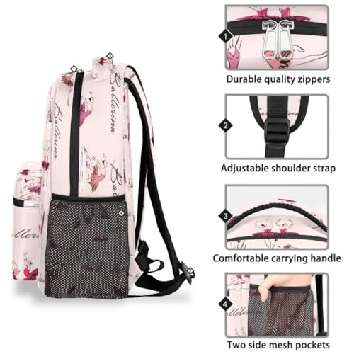 Backpack for Boys Girls Ballet Pattern Lightweight School Backpack A-ballet