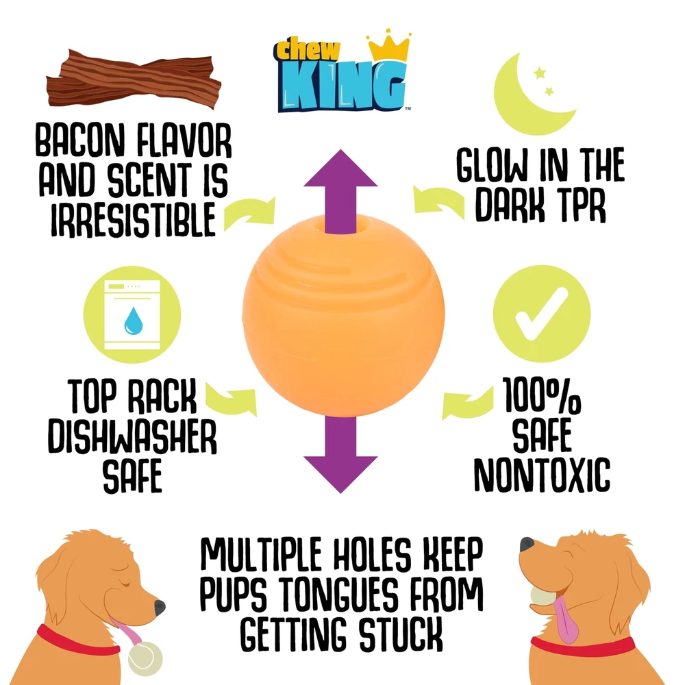 Ditch wet, unpleasant tennis balls for Glow’s BACON-flavored natural rubber fetch balls. Made from durable, non-rubber, these balls have a compartment to tuck a treat inside and drive your dog wild. Durable, natural, BACON smell rubber, retains shape, bounces well, and stands up to tough chew Safety air vent protects your pup, keeps happy tongues from getting stuck Glowing in the dark fetch ball, The fun doesn’t end just because the sun goes down Bounces well, charges quickly under any bright light Designed in the USA, easy to clean, top-rack dishwasher safe
