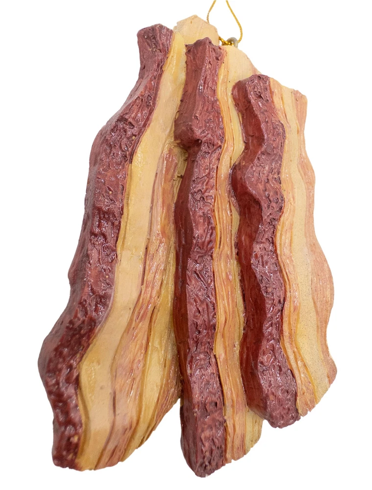 Celebrate the sizzle and aroma of everyone's favorite breakfast delight with our Bacon Christmas Tree Ornament! Crafted with meticulous attention to detail, this charming ornament captures the allure of crispy bacon strips with its realistic design and mouthwatering appearance. Size 4" inches in height by 2 1/2" inches in length. Perfect gift for bacon enthusiasts and food lovers alike, this ornament is sure to spark conversations and bring smiles to the faces of all who behold it. Whether you're decking the halls or simply indulging in some festive fun, our Bacon Christmas Tree Ornament is a deliciously delightful addition to your holiday festivities Realistic appearance captures the essence of everyone's favorite breakfast treat. Hangs easily on Christmas tree branches for instant festive flair. Durable and long-lasting: Made from durable marble resin materials and hand painted, this ornament is designed to withstand the test of time, becoming a cherished part of your holiday décor for years to come. Size 4" inches in height by 2 1/2" inches in length. Spooky Thru Noel curating a diverse collection that seamlessly transitions from eerie Halloween to festive Christmas