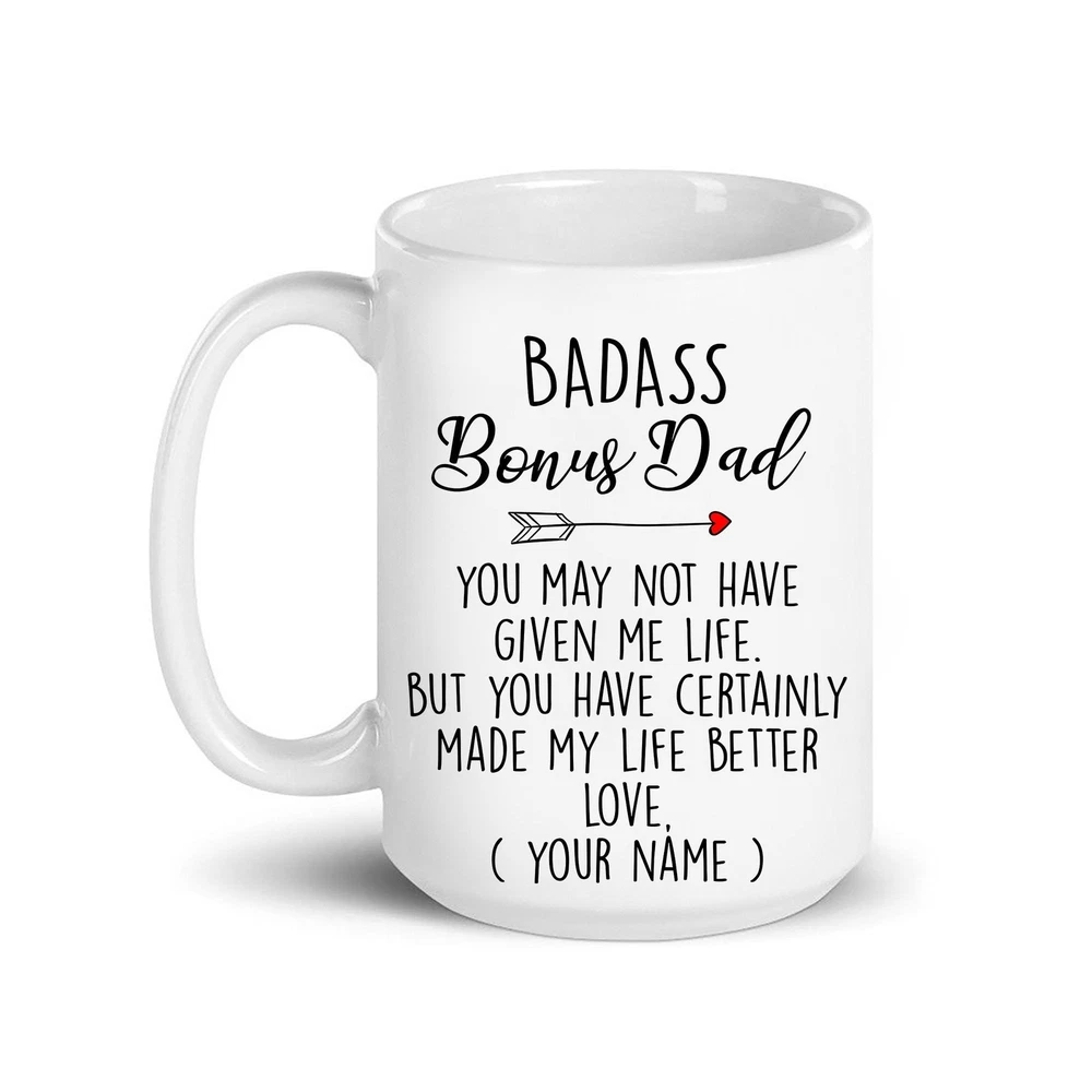 Badass Bonus Dad Fathers Day Fathers Day Gift Gift For Dad Funny Coffee Mug Product Details.. This high quality 11oz. ceramic white mug has a premium hard coat that provides crisp and vibrant color reproduction sure to last for years. Perfect for all hot & cold beverages. The highest quality printing possible is used. It will never fade no matter how many times you wash it. Material: 100% Ceramic. Print both sides. Dishwasher and Microwave Safe. High Gloss + Premium White Finish. Printed in the U.S.A. Personalized & Custom. We support personalized and custom mug to add custom, when placing an order, you can add notes to the "order note" in shipping address section. Also you can contact us directly via message. Shipping Info. Ready to ship in 1 to 2 business days, All products are made-to-order and proudly printed in the United States. Shipped by USPS and DHL, You will receive your order in 5-7 days. Replace & Refund. All products are defective during shipping broken, chipped will be replaced free of charge. You are not satisfied with the product, we will refund 100% money to you. If any other issues arise, please do not hesitate to message, we would be more than happy to assist you.