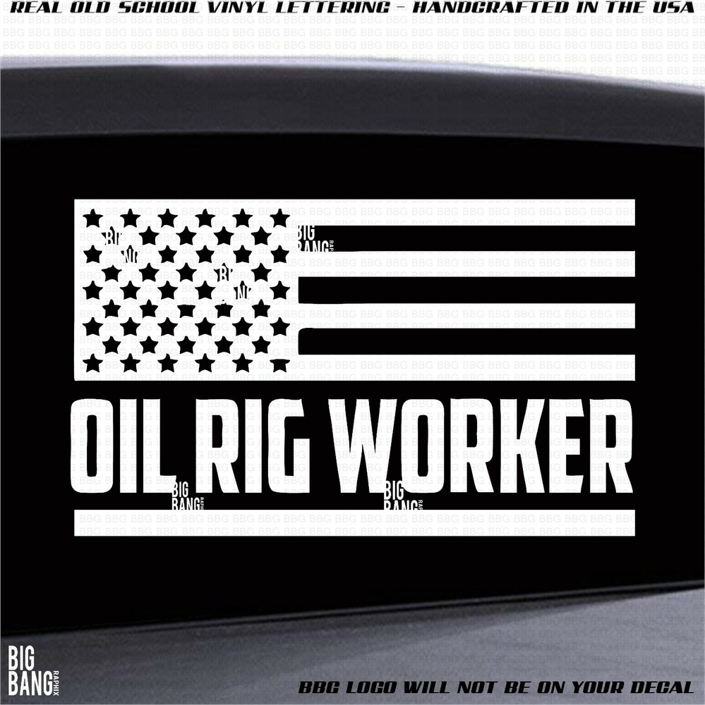 USA Flag Decal Sticker Badass OIL RIG WORKER Diesel Pickup Truck Proud American BIG BANG GRAPHIX - Original Design- Do Not Copy- Decal Your choice of color and size! Sizes Measured in Length. Would you like a custom sticker with your name or business? Please see our store or message me for a quote! What Kind of Decals? Our decals are precision die-cut, made from quality, 7-year PROFESSIONAL COMMERCIAL GRADE VINYL. NOT hobby vinyl. Our decals are available in Red, Orange, Yellow, Lime Green, Green, Sea Foam Green, Teal Blue, Medium Blue, Royal Blue, Purple, Pink, White, Black, Mat Silver "Precision Die-Cut" means that each decal is custom cut precisely along the shape of the design so your decal will have no visible background or bordering spaces. Your precision die-cut decals will come to you masked for easy installation. How and where are these made? Made in and shipped from the U.S.! Each precision die cut, hand trimmed and finished for you. Note: there is no background in the decal. The background will be whatever surface you apply it on. How do you apply die cut decals? Decals can be placed on any flat, clean surface on exterior items as well as interior items. Clean the surface and remove the backing from the decal. Place the decal on the desired clean surface, before removing transfer paper use a credit card type tool to adhere and smooth decal to surface then remove the transfer paper. Thank you for looking and please check out our store for other quality die cut decal. Custom Orders * We make custom decals of any kind if there is something you are looking for feel free to leave a message! Decals can also be made a different size if needed, but the pricing will be different If you have a problem with your order, contact us immediately and we will take care of it. Satisfaction guaranteed! *Feedback will be left after it is rec'd* In order to qualify for a shipping discount (if applicable) you must pay for all items on (1) ONE invoice. WE ARE NOT LIABLE FOR DECALS RUINED DURING INSTALLATION. You MUST squeegee the decal down making sure the letters stick to the application tape (not the liner) before separating the two pieces before installation. When you purchase this decal - you are agreeing to these terms. We accept returns but decal must be in original condition, not partially installed to be eligible. . . . . . . . . . . . . . . . . . . . . . . . . . . . . . . . . . . . . . . . . . . . . . .................................
