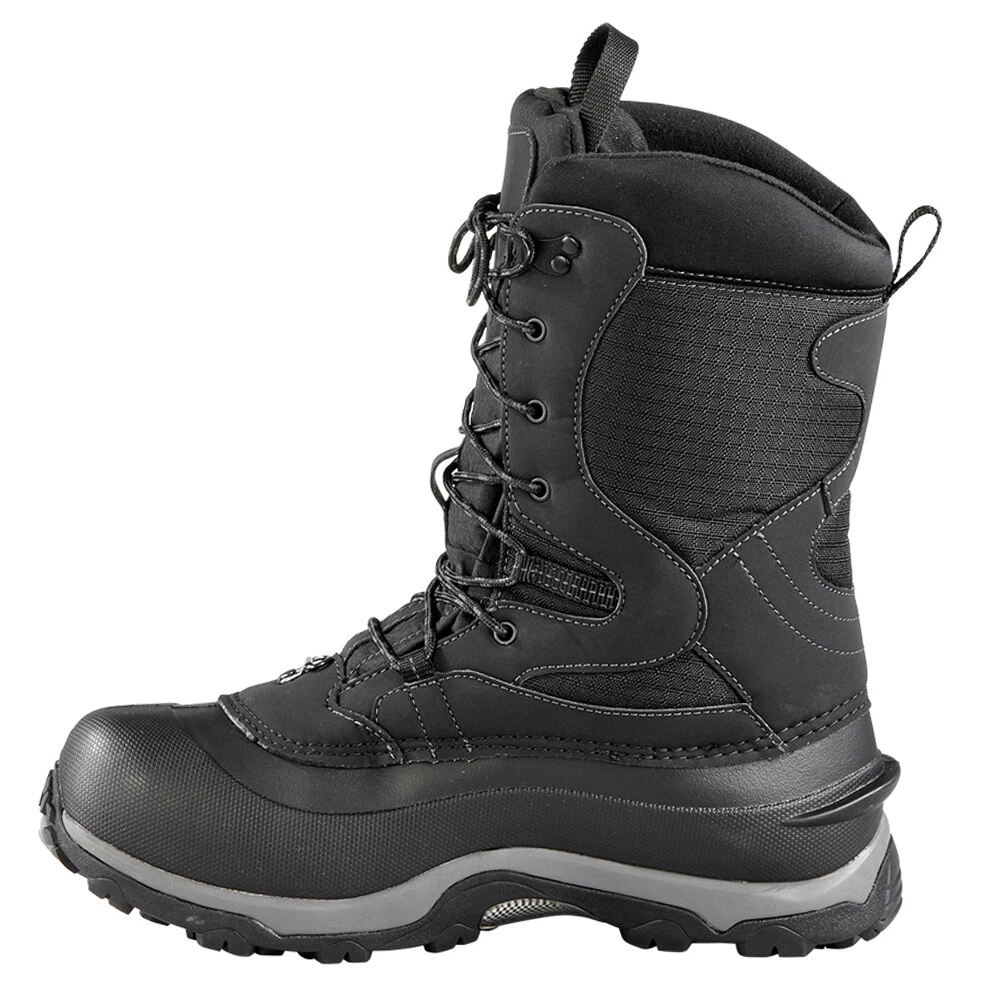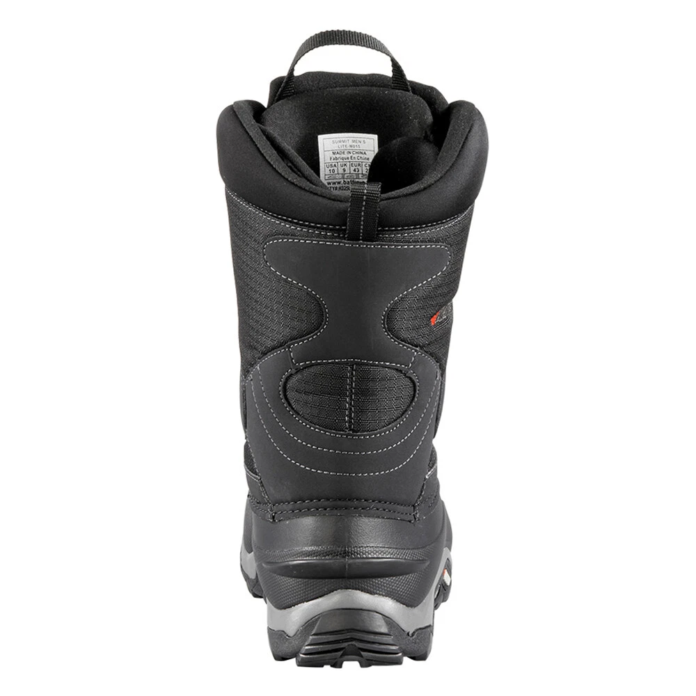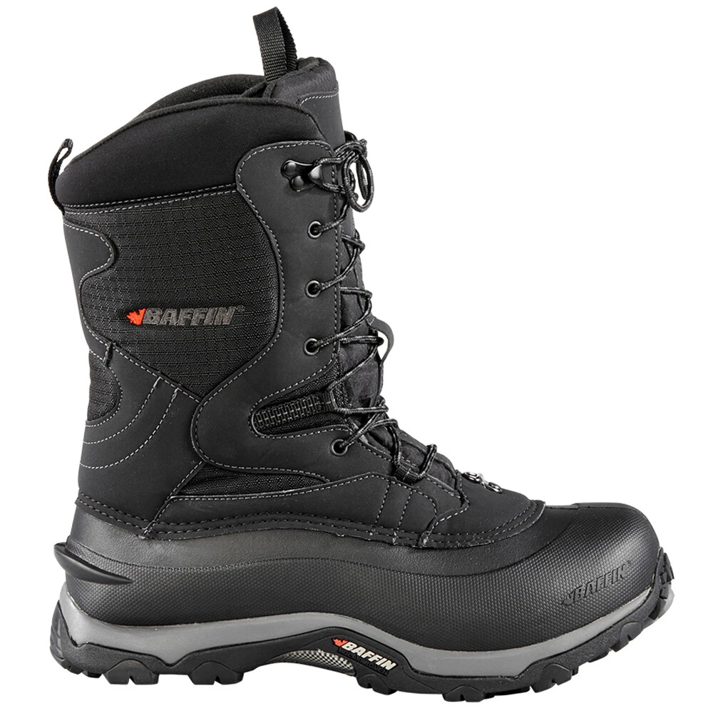 Summit Snow Boots LITEM015-001 Product Details Leather and nylon upper Lace up closure Removable insole EVA midsole Polar rubber outsole Ready for an adventure in the snow? This protective boot will take care of all your comfort and necessities. Featuring a removable multi layer inner boot system with double B Tek insulation and aluminum insole. The waffle comb footbed ensures comfort during long activities, while the Superlite shell ensures protection. The waterproof nylon snow collar supports the inclimate weather of temperatures rating of 5ºC or 41ºF to 50ºC or 58ºF. Additional Details Color: Black Occasion: Casual Gender: Mens Age: Adult Brand: Baffin