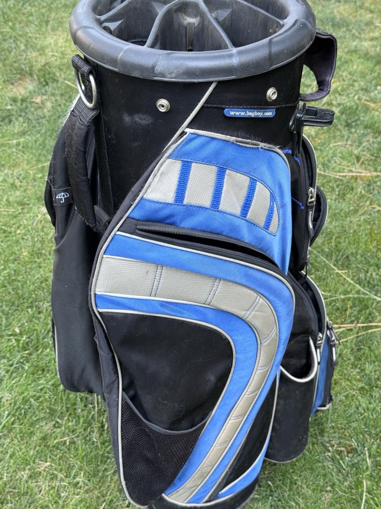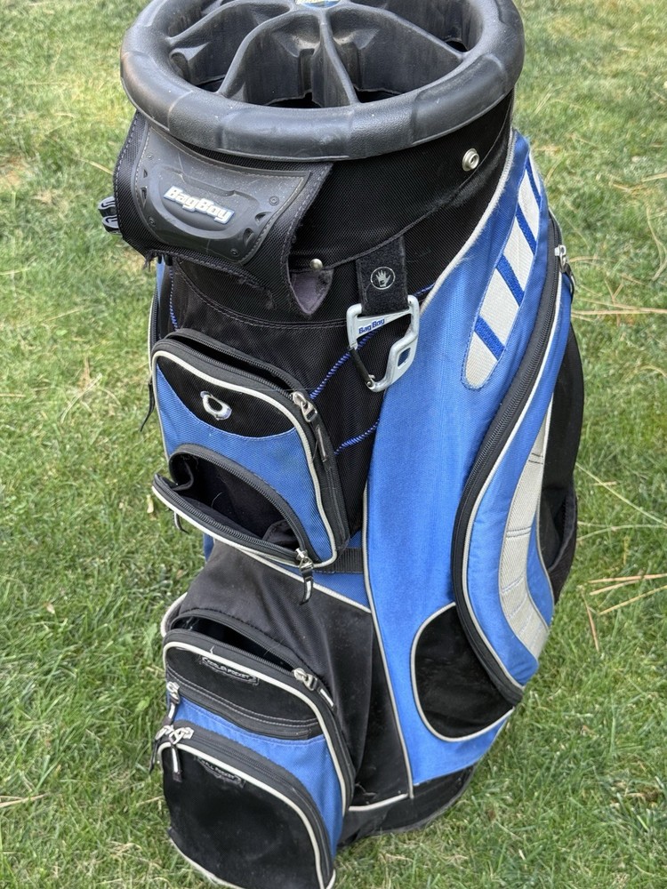 The Bag Boy Revolver XP Cart Golf Bag is a large bag made of durable nylon and polyester materials. It features a zip closure, shoulder strap, and a sleek black color. Designed for men who enjoy golfing, this cart bag is crafted by the reputable brand Bag Boy in the United States. With its high-quality construction and practical features, the Bag Boy Revolver XP Cart Golf Bag is a reliable choice for any golfer looking for a stylish and functional bag to carry their gear.