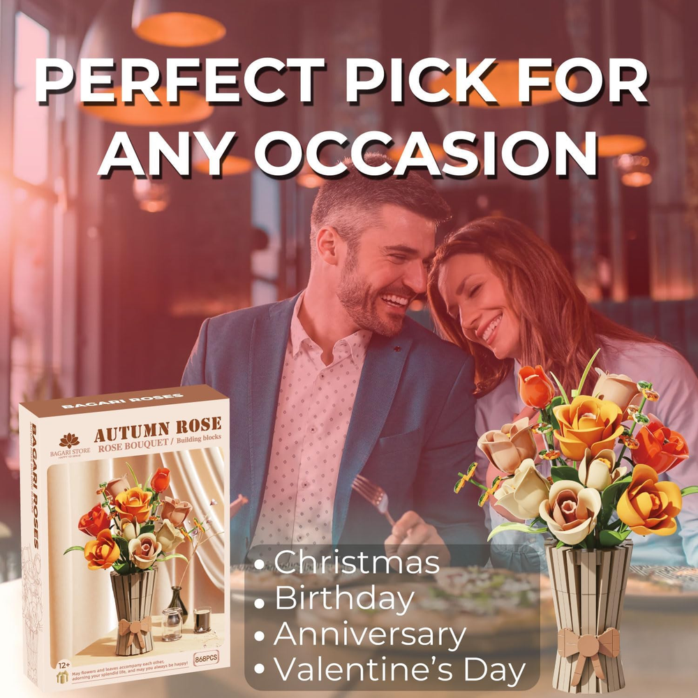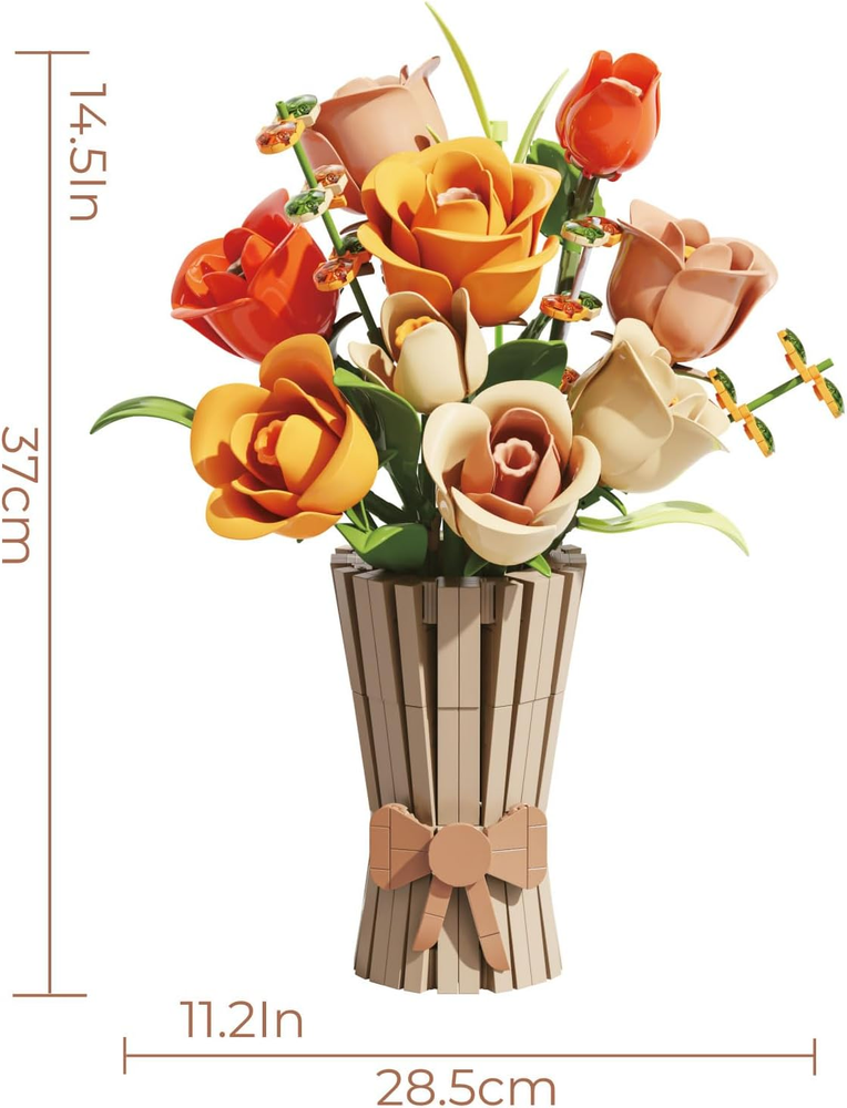 Bagari Roses Bouquet Building Set - Artificial Flowers Building Blocks with Vase, Compatible with Lego Kit for Adults - Collection for Home Office Decor Gifts for Women Men Birthday Anniversary 868PCS Elegant Flower Building Set: Includes 868PCS to build a stunning Autumn Roses bouquet with a vase, adding a touch of beauty to any space. This set features 2 Yellow Roses, 2 Red Roses, 3 Mocha Roses, 2 Champagne Roses, 3 Eucalyptus Leaves, 5 Aspidistra Leaves, 1 graceful Iris and a beautifully designed bowknot vase. Each petal and leaf is intricately designed to capture nature’s essence, offering a realistic and artistic floral arrangement that lasts forever. Perfect Gift for Any Occasion: Whether it's for Valentine’s Day, Mother's Day, birthdays, anniversaries, or special moments, this elegant flower building set makes a unique and thoughtful gift. Designed for adults, women, men, and teens (12+), it’s an enjoyable and relaxing activity that brings creativity and joy while creating a timeless display piece. Exclusive Vase Included for a Complete Look: Unlike many competitors who sell only the flower stems, our set comes with a beautiful buildable vase, allowing you to create a complete floral arrangement. The vase is also made of high-quality blocks, making it an engaging build while enhancing the overall aesthetic of your display. Premium Quality & Easy Assembly: Crafted from high-quality, non-toxic ABS plastic, our building blocks are durable, safe, and precisely molded for a seamless fit. The included step-by-step instruction manual makes assembling this intricate floral masterpiece easy and enjoyable for both beginners and expert builders. Home & Office Decoration That Lasts Forever: Unlike real flowers, this artificial bouquet never wilts or fades, making it a perfect long-term decoration for home, office desks, living rooms, bedrooms, and dining tables. Whether you want a touch of nature on your workspace or a statement piece in your home, this floral arrangement adds elegance and charm to any setting. Product Description Adjustable Petals Adjustable Leaves Adjustable Height Bowknot Vase How many pieces are included in this flower building set? This set includes 868 high-quality building blocks to create a stunning Autumn Roses bouquet with a vase. Every element is designed to reflect real floral beauty while offering a satisfying building experience. What exactly comes in the box? The box includes all 868 pieces to build 2 Yellow Roses, 2 Red Roses, 3 Mocha Roses, 2 Champagne Roses, 3 Eucalyptus Leaves, 5 Aspidistra Leaves, 1 Iris, and a beautifully designed buildable vase – everything needed for a complete floral display. Is this flower set suitable for kids or just for adults? This elegant flower building set is recommended for ages 12 and above. It’s perfect for adults, teens, and older kids who enjoy creative and relaxing building activities. Parental guidance is suggested for younger users due to small parts. Can I gift this set for Valentine’s Day, birthdays, or other special occasions? Absolutely! This flower building set makes a perfect gift for Valentine Day, Mother’s Day, birthdays, anniversaries, or just to show appreciation. It’s a thoughtful, everlasting alternative to real flowers. Can this floral arrangement be used as home or office décor? Yes, it’s perfect for home and office decoration. The elegant design and included vase make it ideal for desks, tables, living rooms, bedrooms, or any space that could use a touch of lasting beauty. Item Weight 2.07 pounds Color Roses Building Set Product Dimensions 11.2 x 7.48 x 14.3 inches Manufacturer recommended age 8 years and up 7.48 inches x 11.2 inches x 14.3 inches. Weight: 2.07 lb Shipping from the USA All of our products are shipped from the USA, ensuring quick delivery to your destination. Payment We offer the following payment methods: PayPal, credit card, bank transfer, and eBay's secure payment system. Free Shipping & Free Returns Shipping within the USA is FREE. Additionally, any return is absolutely free for you. Risk-Free Purchase You have the option to return an item within 30 days without any justification. We cover the return shipping costs! Fast Shipping We ship immediately upon receipt of payment. Generally, the package is delivered within 2-3 days in the USA. If it takes longer, we will contact you. Quality and Costs Made in Europe, USA, China No customs fees or additional charges Total satisfaction guarantee Invoice with declared VAT available upon request in .pdf format Feedback Your feedback is very important to us. After you pay for your purchase, you will automatically receive positive feedback from us.