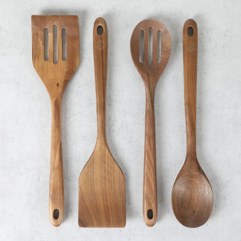 Bainford 4-Piece Wooden Kitchen Tool Set - Walnut
