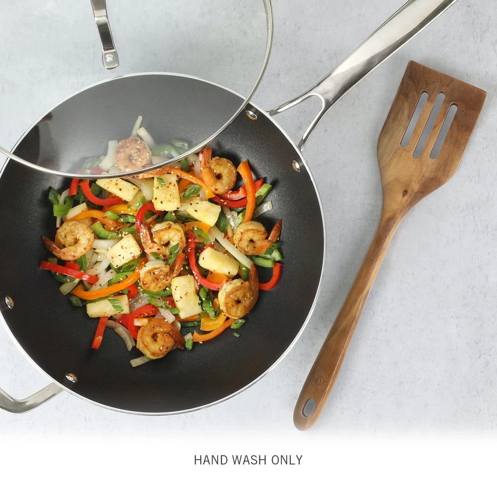 There is something cozy and welcoming about seeing a set of rustic kitchen tools with a natural-grained finish in any kitchen. They lend a piece of the outdoors and remind us of how home cooking makes us feel - right at home. The Bainford 4-piece Walnut Wood Kitchen Tool Set from is a beautiful collection of cooking utensils crafted from ash wood for durability and finesse. Long and sturdy handles provide a smooth and comfortable grip when mixing, folding, and serving. Each kitchen utensil is safe to use on nonstick interiors, enameled surfaces, and other cookware with delicate finishes. Hand wash only. Occasionally apply a thin layer of oil to maintain the natural quality and finish of the product. Embrace thoughtfully designed home essentials from America’s most trusted lifestyle expert, . Step into her exquisite and iconic world filled with a curation of high-quality products to prep, cook, bake, serve, and enjoy. All crafted to elevate everyday homemaking and seasonal entertaining, these kitchen and tabletop pieces blend style and performance, inspiring avid hosts and home cooks to set stylish tables, serve up delicious meals, and create spectacular memories. WHAT'S IN THE BOX: One 14-inch walnut spoon, one 14-inch walnut slotted spoon, one 14-inch walnut turner, and one 14-inch walnut slotted turner CRAFTED FROM OLIVE WOOD: Natural walnut wood craftsmanship features smooth-grained variations to add a rustic appeal to any table or kitchen countertop NONSTICK-FRIENDLY: Safe to use on nonstick interior, enameled interior, and other cookware with delicate finishes ERGONOMIC HANDLES: Provides a sturdy grip when mixing CARE INSTRUCTIONS: Hand wash only. Do not soak in water to prevent from splitting. To maintain the natural quality and finish of the product, apply mineral oil after every use or when the wood feels rough or dry.