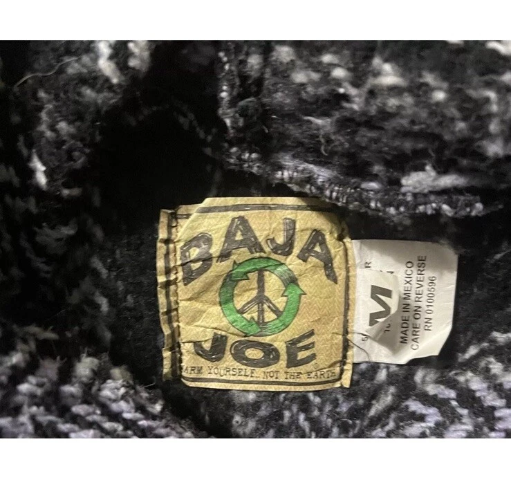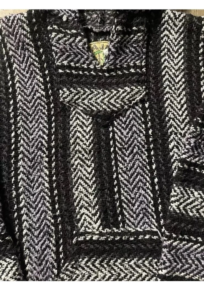 This Baja Joe hoodie is a vibrant and stylish pullover that features a striped pattern in red, black, yellow, and green. Made in Mexico with 50% polyester, 40% acrylic, and 10% cotton, this hoodie is perfect for any season and activity, whether it's hiking or walking. The relaxed fit and V-neckline make it a comfortable and versatile piece of activewear, while the hood and pocket accents add a touch of functionality. This unisex adults hoodie is a great addition to any wardrobe, with its Mexican and hippie themes and long sleeves. Good Condition, normal wear Thanks for looking