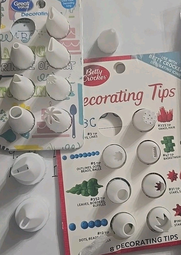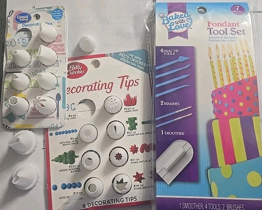 Big lot of various baking tools, most never used. Baked With Love Lot of Fondant Tools and Icing tips and icing tools for cake decorating, some are Great Value. Made from silicone and plastic, these multicolored nozzles are perfect for adding decorative touches to your baked goods. With this set, you can easily create beautiful designs and patterns on your cakes, making them look even more appealing. Ideal for both beginners and experienced bakers, these tools are a must-have for anyone who loves baking and decorating cakes.