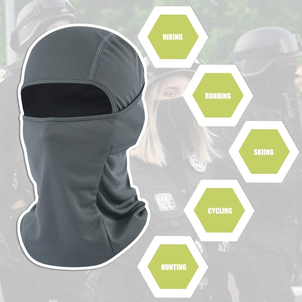 ULTIMATE PROTECTION: This sunscreen mask is made of high-quality breathable UPF 50+ mesh fabric, super comfortable, lightweight, and durable. Protect your head and face from UV rays, dust, and wind, it is ideal for outdoor activities in summer or winter. VERSATILE FULL FACE MASK: This mask is widely used as a full face mask, open balaclava, half ski mask, neckerchief, pirate scarf, skull cap, ninja hoodie, or sun shield mask. By wearing this balaclava under your helmet with sunglasses or goggles, it can provide you enhanced protection while you are sporting or working outside. QUICK-DRYING and STRETCHY FABRIC: The high-quality material applied to the mask performs very well in terms of moisture-wicking, quick-drying, which can provide you with all-day comfort and keeps your face clean and dry. The balaclava provides a longer neck area with extra length at the front for better protection. MULTI-PURPOSE APPLICATION: The full face mask can be worn all year round. Whether you are hiking, cycling, motorcycling, running, mountain-climbing, hunting, boating, swimming, skiing, skating, snowboarding, or doing construction work outside, this multifunctional mask is eligible to provide you the optimal protection. BUY WITH CONFIDENCE: While enjoying our balaclava mask, please also get some for your family, friends, or your loved ones as gifts for Christmas, New Years', Valentine's Day, Father's Day, Mother's Day, etc! If you have any size problems or you are not 100% satisfied with our masks for any reason, please feel free to contact us for professional customer support. The 1-year warranty is provided by .