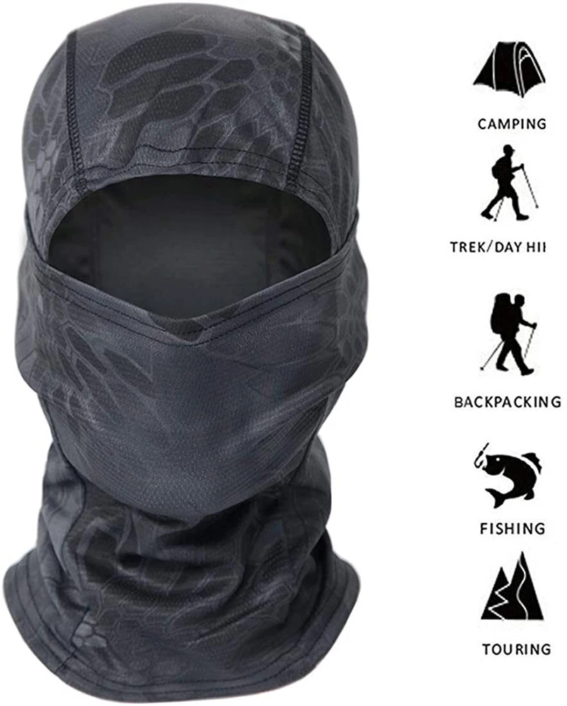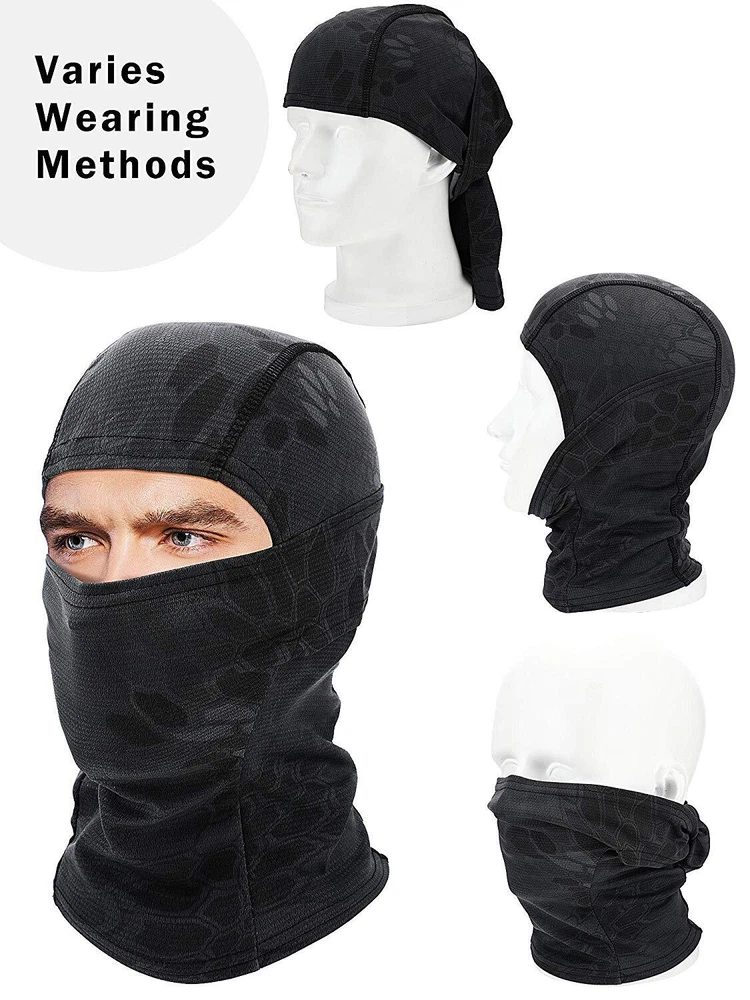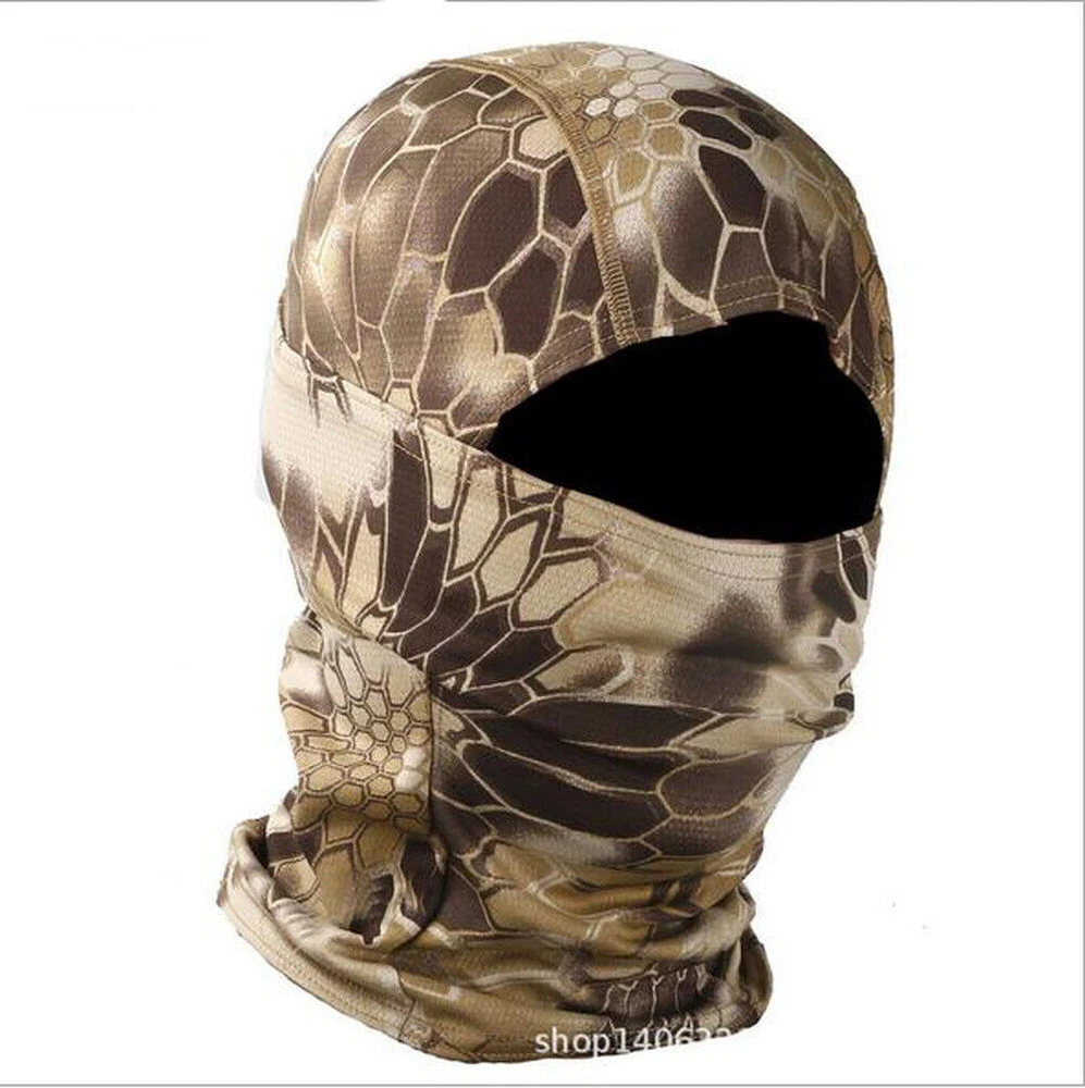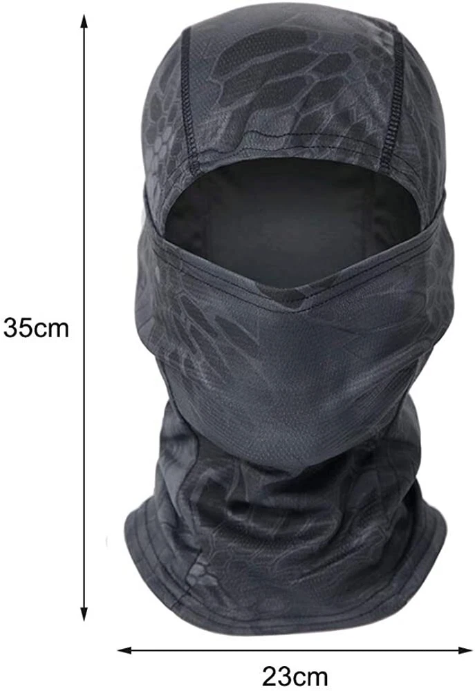 Product Description Features: 1. Airsoft tactical mask:Balaclava face mask headband as you like Great for outdoor activities such as military mask,climbing, running, cycling, Motorcycling, biking, trekking, boating, skating, hunting, shooting, skiing, hiking, Snowboarding, snow machining, airsoft paintball, tactical training. 2. Breathable Material:Premium breathable, lightweight, wicking and anti-static meanwhile zero-pilling and durable,The balaclava mesh material is breathable and absorbs sweat and will keep you dry. It also fit nicely under your helmet and goggles and keep your face and head warm. You will forget that you wear it, there is no sense of restraint. 3. Provides great protection to your face, ear and neck from sun.Extremely elastic strong and durable - wrinkle free - lightweight, portable and comfortable,ventilation - quick drying. 4. Designed: Pattern blends in well with outdoor environments,provide maximum concealment while windproof, dustproof,melt into nature and comfortable during your hunting trips, size:23*38cm Weight:50g,This face mask has flexible four-way stretch characterfits well on a most head sizes. 5. Ultimate Versatility– Wear your balaclava on its own or under a helmet. Wear it as a full face mask, open balaclava, half ski mask or neck gaiter. People use our balaclavas for skiing, snowboarding, riding, ATVing, hunting, construction, warehouse work and shoveling snow. Specification: Material: Polyester fabric Weight: About 45g Color: Multi Colors For Choose Size: 38 * 23cm Quick-drying Fast air permeability Fit For: Cycling, Hunting, Motorcycles, Bicycles, Wargame, Skiing, Hiking and other outdoor sports Pack age Include: 1* Balaclava Mask