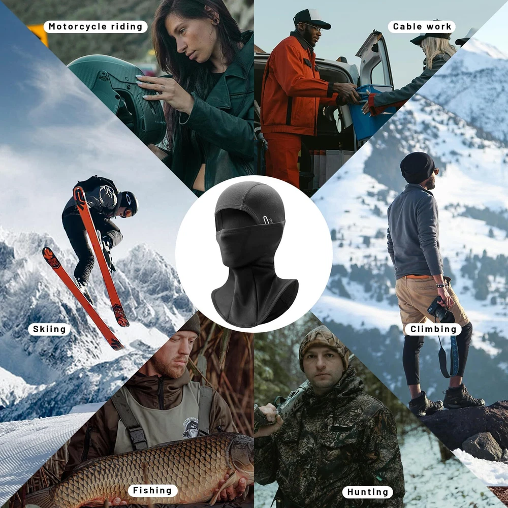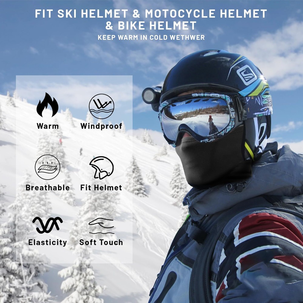 Full Protection - balaclava face mask is made of high-quality nylon fabric, comfortable, lightweight, breathable and durable. Protects your head, face and neck from wind, UV rays, dust and cold. Keep warm but breathable - The ski mask with advanced thermal fleece is soft, warm and breathable, providing comfort breath and pleasantly warmth for you when doing outdoor activities. And it comes well down onto your shoulders ensuring no air gaps. Protect you well even under 32°F(0 ℃). Versatility - Our winter face mask offers multi-use, could be used as a balaclava, pirate hat, shiesty mask, full or half face mask, and neck Gaiter. And it fits most helmet perfectly, is widely used in skiing, skating, snowboarding, motorcycling, ice fishing, riding, hunting, construction work and warehouse duties. Humanized Design - The head masks designed with glasses hole that fits with the most sunglasses and goggles easily. Reflective warning strips in back make riding safer at night. And our design allows mouth & nose to be readily covered, uncovered. Universal Size - Balaclava scarf mask hood used high-elastic materials to fit various head, snug but not tight, suitable for both men, and women. Best gift for your families.
