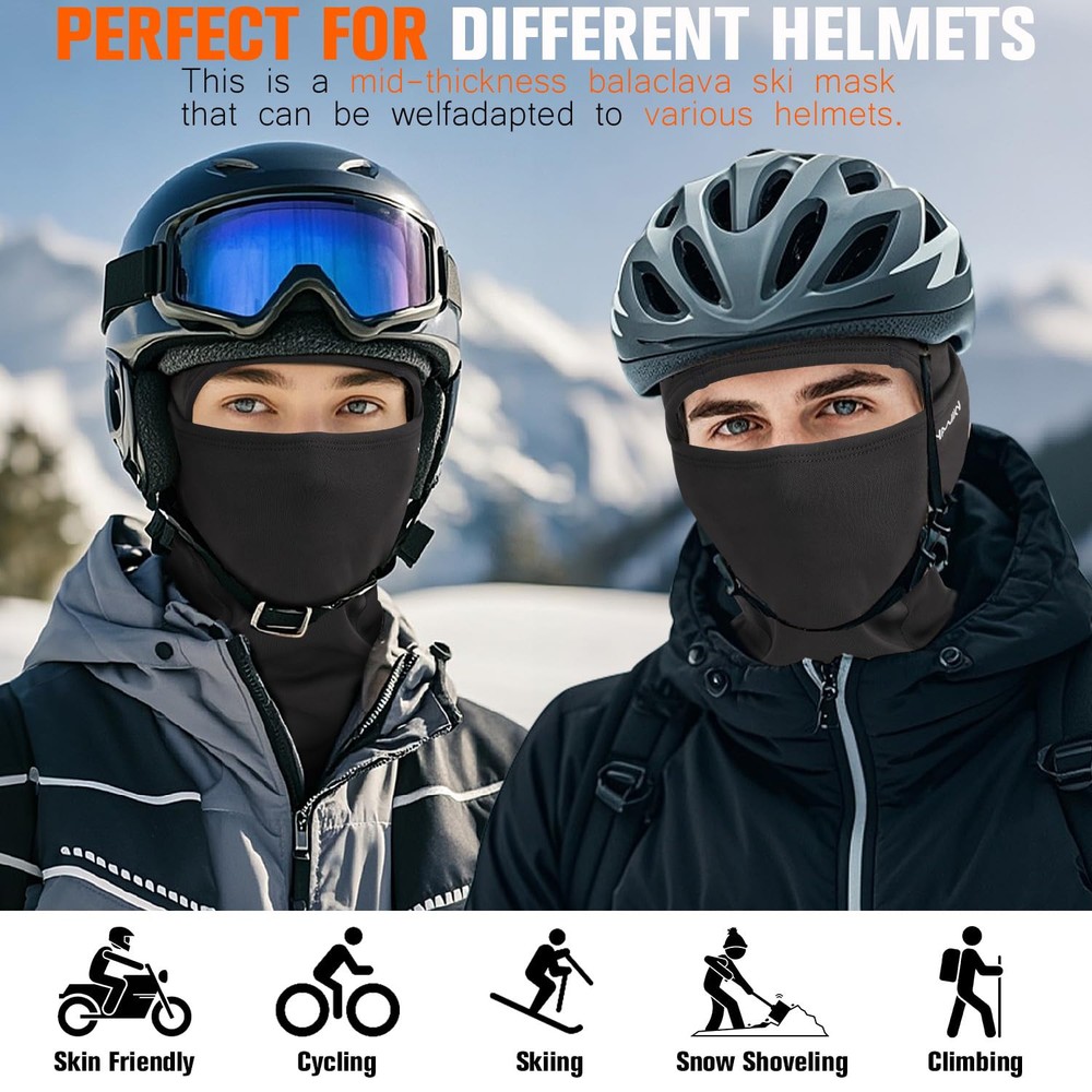 【Extremely Warm】The Balaclava face mask is made of fleece fabric, which has a super soft and smooth touch, covering the entire face and neck while keeping warm. Ski masks benefit from windproof surfaces. Even in extremely harsh weather conditions, excellent performance can easily defend against it.Featuring a unique design, you can pull down the lower cover without having to remove the entire Balaclava. 【Super Elastic】This Face Cover is made of highly elastic materials, taking into account the head shape of more people. You can purchase for your husband, children, and parents. This is the best gift for family. Provide ultimate warmth protection and comfort in winter. (Please measure your head circumference before purchasing) 【Improved 2024 Design】Balaclava features a longer front and smooth side stitching design, greatly reducing wrinkles and better fitting the face, enhancing facial shape. To provide you with better wind and cold resistance. Lightweight materials make it more comfortable and suitable for you. These small details will bring a better wearing experience! 【Multi Functional Balaclava Ski Mask】The men's balaclava is perfect for motorcycle helmets, ski helmets, bicycle helmets, and safety helmets. Balaclava is widely used in skiing, motorcycles, running, snowboarding, construction, warehouse work, and snow shoveling. 【Rest Assured Service】We provide a satisfaction guarantee. If the winter balaclava hat is damaged within 90 days, we will replace it so that you can purchase with confidence. If you have any questions about our Balaclava hat, please feel free to contact us at any time.