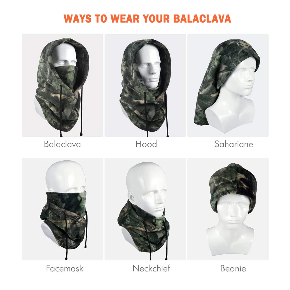 🔔THICK FABRIC DESIGN TO KEEPS YOU ULTIMATE COMFORT AND WARM - Our balaclava ski mask is made with premium thick polar fleece that it is extremely soft and make your face and neck stayed warm in cold weather. Going to be a staple in your extreme weather gear from now on! 🔔ULTIMATE PROTECTION FROM COLD, WIND, DUST AND UV - Our balaclava face mask protects you against the elements whether you’re hunting, ice fishing, skiing, snowboarding, or just spending time outdoors in cold, blustery weather. And the breathable fabric to increase airflow while minimizing condensation on your goggles. 🔔LONG LENGTH DESIGN - The neck is extra long design, full head & neck coverage that easily tucks into jackets. Adjustable hood to fit all face shapes and most head sizes, and is suitable for either men and women. Can be worn in 3 different ways: open face balaclava, neck warmer or full ski mask. 🔔A PERFECT HUNTING ACCESSORIES - Exclusive hunting camouflage patterns design that will match the majority of hunting gear you already own. It can kept your head and face warm in cold hunting season. This hunting face mask is great for any hunter the perfect gift! 🎁GIFTS IDEAS - Perfect Birthday gift, Christmas gift/stocking stuffer for your friends or family! You can buy with confidence! Quality and Customer Satisfaction are our top priorities. If this camo balaclava doesn’t live up your expectations, contact us and we will solve it to make sure that you are happy with your purchase!