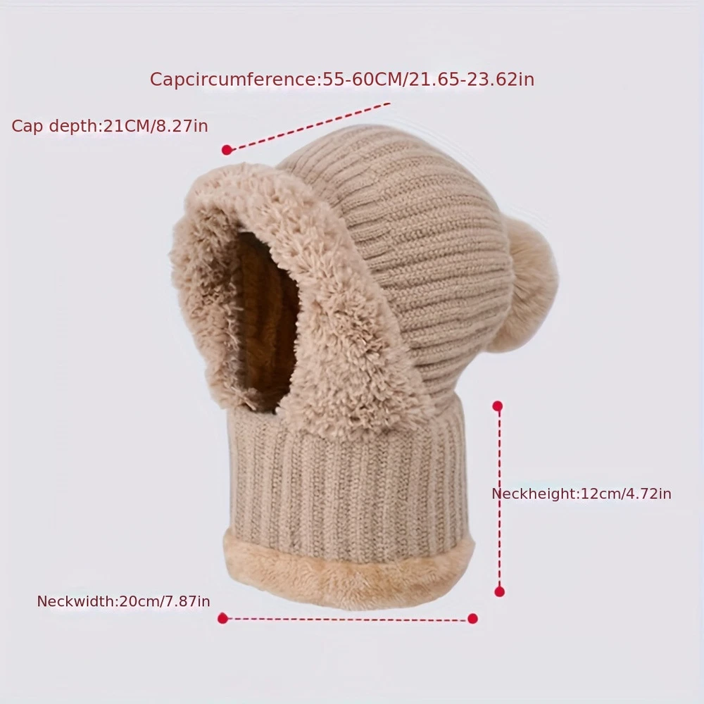 1. 3-in-1 Multi-Functional Design, A One-Stop Solution for Winter Warmth Combines a knit hat, scarf, and face mask in one piece—no need for additional scarves or masks. It covers the head, neck, and face all at once, providing complete protection against cold winds and low temperatures in one go. It saves storage space during outings, making daily commutes and outdoor trips more convenient. 2. Thickened Fleece Lining + Ear Flaps, Effectively Locks in Warmth & Resists Cold Equipped with a high-density fleece lining and widened ear flaps, it creates a double barrier against cold air. Even in temperatures below -10℃, it keeps the head, ears, and neck warm, completely eliminating the trouble of "frozen ears" and "cold neck". The fleece material is soft and skin-friendly, with no itchy sensation even after long hours of wear. 3. High-Quality Knit Fabric, Durable, Wear-Resistant & Skin-Friendly Made of anti-pilling knit fabric with a fine texture and good breathability. It maintains a neat shape and retains its warmth even after multiple washes, without losing its effectiveness. The fabric is skin-friendly, non-stuffy, and sweat-resistant, ensuring comfort whether worn daily or for extended periods outdoors. 4. Ergonomic Fit Cutting, Unisex & Fits Most Head Sizes Features an ergonomic design that fits most head circumferences (approximately 54-60cm), suitable for both men and women. It offers a comfortable fit with no tightness or looseness. The face mask part can be flexibly adjusted to control coverage—it does not block vision or affect breathing, balancing warmth and practicality perfectly. 5. Multi-Scenario Adaptation, Blends Winter Fashion & Practicality Provides comprehensive protection for scenarios like daily commutes, snow walks, and outdoor cycling. Its simple knit style seamlessly matches various winter clothing such as down jackets and coats. It is not only a must-have warm item for winter but also a fashion accessory that enhances the texture of your outfit—ideal for both gifting and personal use.