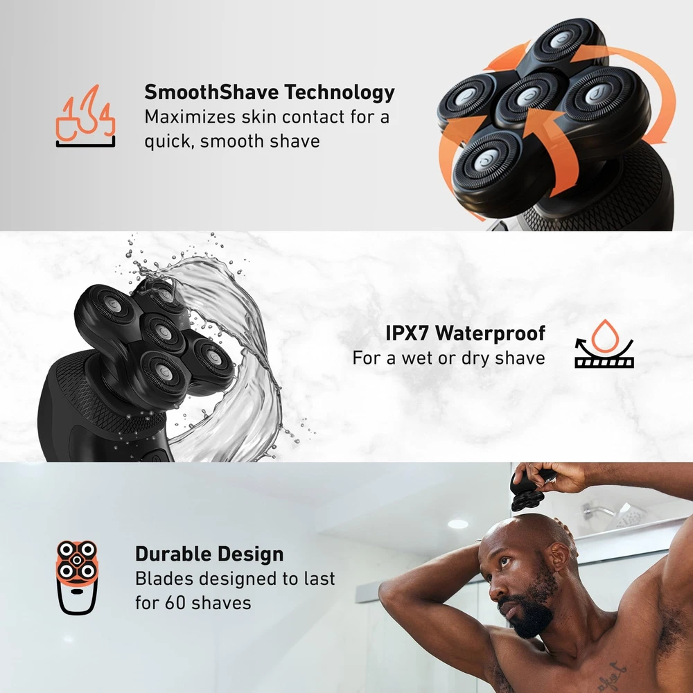 BaldiePro Blade Refill 2.0 + Chamber - Electric Shaver Replacement Head For BaldiePro Head Shaver - Electric Razor Replacement Blades for Bald Head and Face - Waterproof for Wet and Dry Shave TOP-NOTCH SHAVING TECHNOLOGY: When your your hair, feels rough on your skin or you notice more skin irritation than normal post-shave, its time to do a blade refill! The BaldiePro Blade Refill features SmoothShave Technology, allowing for a smooth, close shave. It is most well known for its ease to shave your head, however, it is also commonly used for shaving the face, body, as well as being used as, ahem, a ball trimmer for when grooming is needed "down unda" NO HAIR, DON'T CARE: Get a clean cut in only 3 minutes! Whether it's a wet or dry shave, our IPX7 waterproof electric head shaver replacement blade heads are sure to leave your scalp feeling smooth. The five blade replacement blades also features MessFree Shave technology, which captures hair within the blade system SHAVING MADE EASY: Shavers for men and shavers for bald heads have changed over the years so the BaldiePro Blade Refill makes touching up the skull or beard quick, painless and easy. They make excellent blade refills for your BaldiePro electric head shaver to clean up your scalp whilst saving money on hair products, trips to the barber or hair-loss treatments BALD IS BEAUTIFUL: Using the BaldiePro as a skull shaver makes you look younger and embracing baldness allows you to thrive in your career and personal life making them great head shavers for bald men and the BaldiePro Blade Refill make for outstanding skull shaver replacement blades. 66% of men experience some form of hair loss or balding by age 35. Tightly grooming thinning hair can raise your self-confidence and allow you to love being bald! THE RIGHT TOOLS: Enhancing mens grooming, the BaldiePro Blade Refill should be part of any mens grooming kit when you need to replace the blades of your BaldiePro Head Shaver. Its 10,000 RPM motor, smart LED display and long-lasting lithium battery give a 90-minute run time allowing you take your time to ensure you get the best shave possible Shipping We offer FREE shipping on all orders! We ship within Three business days of payment, usually sooner. We use a selection of shipping services such as UPS, FedEx, USPS etc. We only ship to the lower 48 states, no APO/FPO addresses or PO Boxes allowed. Local pickups and combined shipping options are not provided at this time. Return You can return a product for up to 30 days from the date you purchased it. Any product you return must be in the same condition you received it and in the original packaging. Please keep the receipt. Payment We accept payment by any of the following methods: PayPal Please pay as soon as possible after winning an auction, as that will allow us to post your item to you sooner! Feedback Customer satisfaction is very important to us. If you have any problem with your order, please contact us and we will do our best to make you satisfied. Contact Us If you have any queries, please contact us via ebay. We usually respond within 24 hours on weekdays. Please visit our eBay store to check out other items for sale! Thank you for shopping at our store.