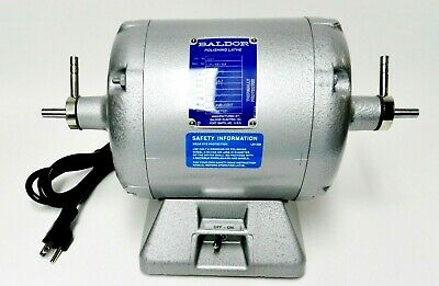 BALDOR 359T MOTOR JEWELRY DENTAL POLISHING LATHE BALDOR 359T Polishing Lathes for precision, trouble-free polishing. All lathes are made of heavy construction, dynamically balanced rotor and shaft provides vibration free with rubber feet minimize vibration and quiet operation. This motor is widely used in the Jewelry and Dental industry. Baldor polishing motors are sealed bearing sealed for life will never be affected by dust and debris. A High Performance heavy duty motor made for many years of continuous trouble free use. This is the Baldor 359T single speed 1/2 HP polishing motor with taper fit shafts. Baldor taper fit shafts use special taper fit spindles that slide onto the taper fit shafts and then are "tapped" at the spindle end with a soft wood hammer for a secure friction fit. Spindles are removed by rotating the spindle removing ring pins. As the screw-fit rings rotate out, they push the friction fit spindles off the shaft. The 359T measures 14-1/4" from tip to tip of the taper fit shafts. The shaft height is 5-1/4" measured from the middle of the shafts. SPECIFICATIONS: JETS Product # 1601-359 - Model: 359T Lathe Totally Enclosed - HP: 1/2 HP - Single Speed: 3450 RPM - Double Shaft: 3/8" shaft diameter with 1/4" taper - (0.375" shaft / 0.250" taper) - Power: 115 Volt - Factory Connected Power 8Ft - 3 Conductor Cord with Plug - Phase: 1PH - 60HZ - Amps: 4.7 - Rating: 40C AMB-CONT - UPC: 781568127834 - Ship Weight: 36 LB NOTE: Motor is Made in USA, UL Listed and CSA Certified – A Full 3 Year Warranty against burnouts, defective materials, and workmanship, covers all parts except those subject to normal wear, by Baldor ABB. Last 2 pictures show the tapered spindle/s see our store ebay listing ID # 201166590867 SHIPPING: Via UPS GROUND NOTE: Visit JETSTOOLS our ebay Store where you can see various Motors, Commercial Grades of Spindles, Arbors, Miniature Mandrels and Holders along with more J ewelers E quipment T ools and S upplies . JETS Inc. 36 UPS G 1120 CKSP M