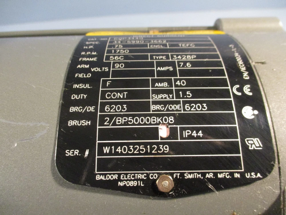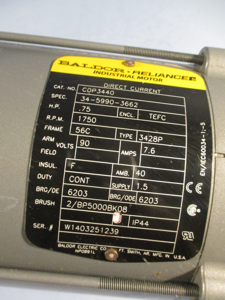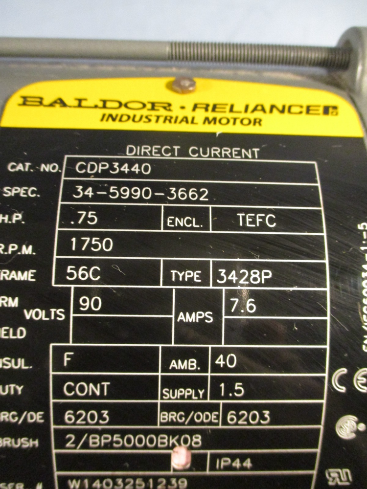 Baldor CDP3440 34-5990-3662 .75HP 90VDC 1750RPM TEFC Motor 56C Frame 7.6 Amps