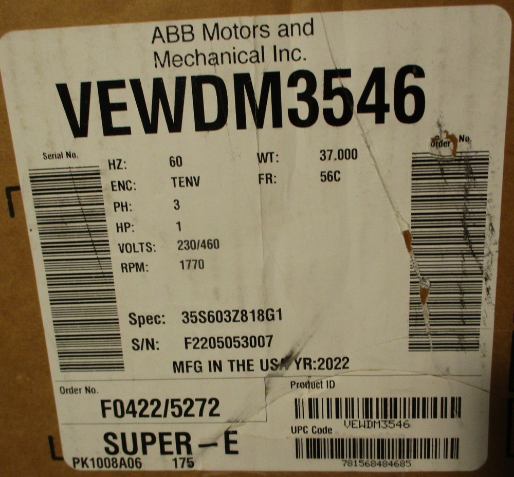 Motor For sale is a Baldor Reliance VEWDM3546 3 PH Motor 1770 RPM 56C TENV 1HP 5/8" Shaft Dia. Item appears new and in excellent condition. Will come as shown and with what is pictured. May show minor imperfections but nothing that will impact performance. Shaft Dia: 5/8" Thank you for looking and please let us know if you have any questions. eTech Surplus Rochester, NY Shipping: Charged according to location. Please note that eBay charges sales tax, we do not. We at eTech Surplus strive to honestly and accurately describe each item we sell. Please feel free to contact us with any questions. International Buyers - Please Note: Import duties, taxes and charges are not included in the item price or shipping cost. These charges are the buyer's responsibility. Please check with your country's customs office to determine what these additional costs will be prior to bidding or buying.