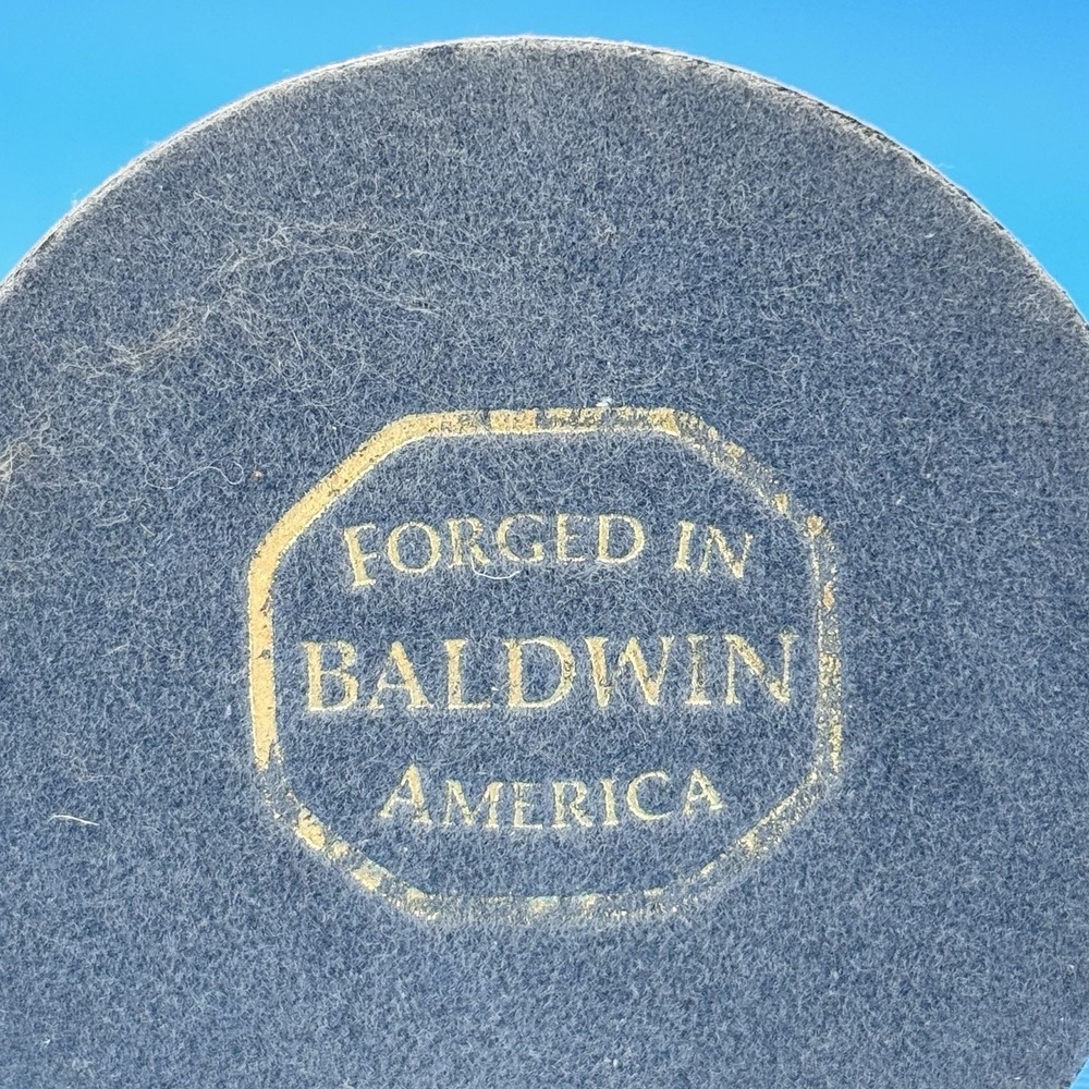 The product described is a vintage 7" brass candle holder in a colonial style, made by the brand Baldwin. The candle holder is polished brass with a gold color, adding a touch of elegance to any decor. Perfect for collectors or those looking to add a touch of historical charm to their home, this candle holder is a beautiful and timeless piece that will enhance any space.