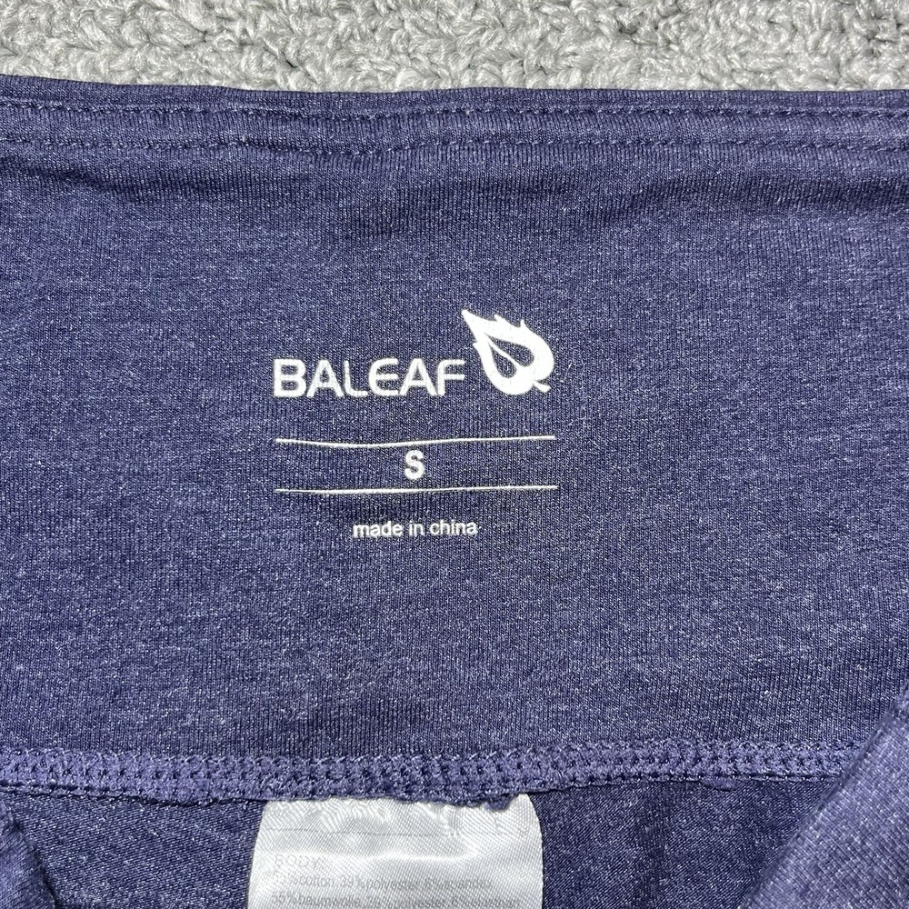 Baleaf Athleisure Workout Shorts with Pockets Womens Size Small Blue See measurements for accurate fit. Waist 12 inches across. Inseam 5 inches Rise 8 inches All measurements are done flat lay