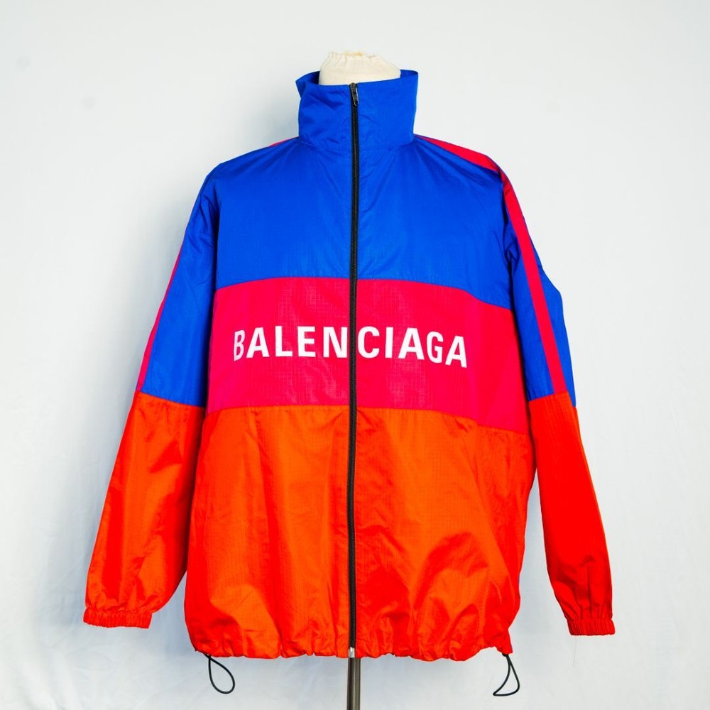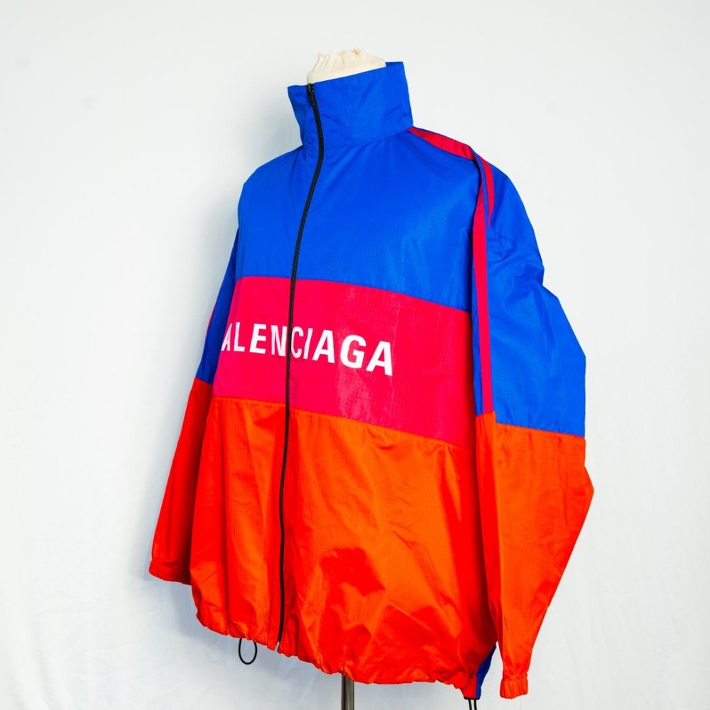 Brand: Balenciaga Size: 34 Department: Men Outer Shell Material: Polyurethane Size Type: Regular Color: Multicolor Country of Origin: United Arab Emirates Type: Jacket Style: Windbreaker