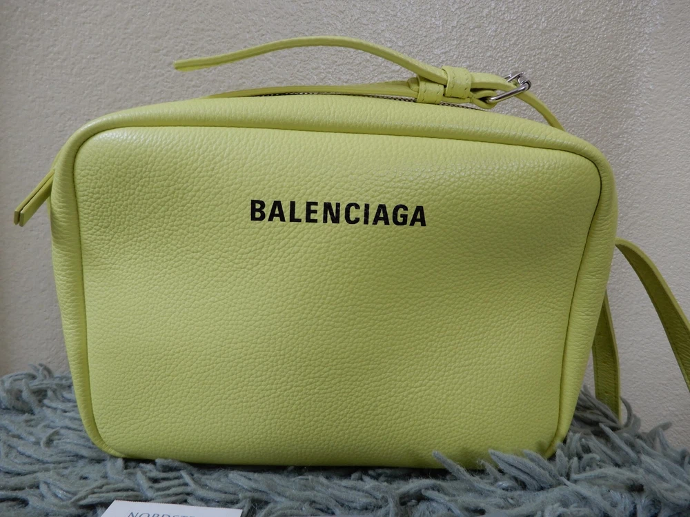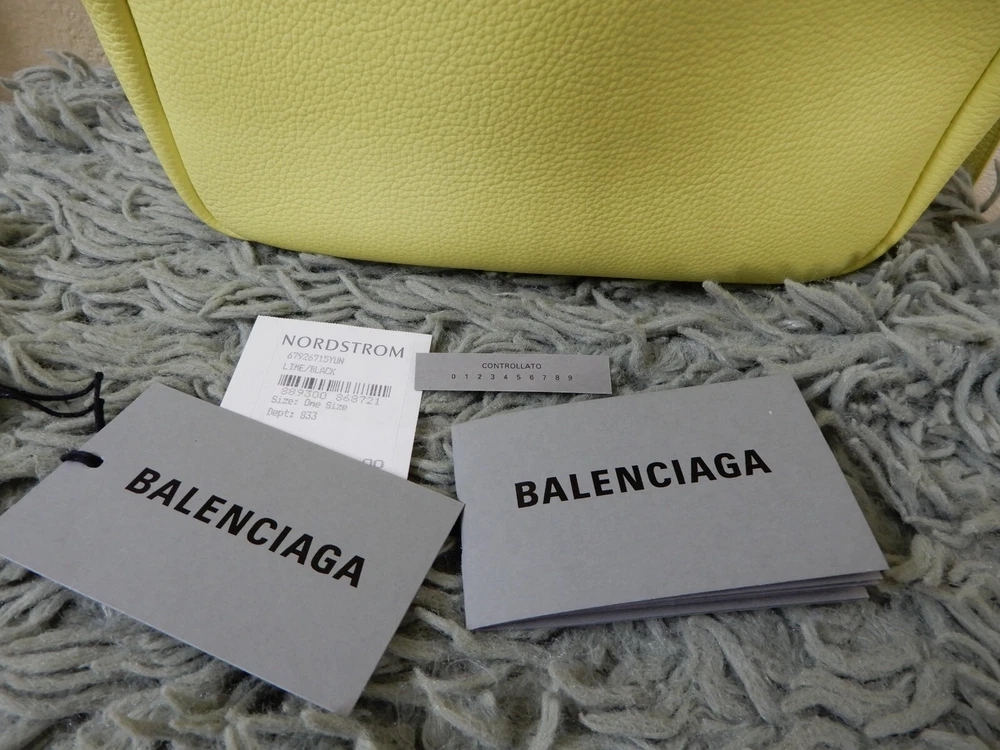 Balenciaga Medium Everyday Calfskin Leather Camera Bag Lime/Black Guaranteed authentic. I bought this online last year from Nordstrom and a copy of the receipt can be provided upon request. Kept in a smoke-free home. 8.5"w x 7"h x 3" d 21" max strap drop .55 lbs The Balenciaga logo stands out in crisp blak against lime calfskin on a go-to crossbody in a vintage camera–bag silhouette. Top zip closure Adjustable crossbody strap Exterior slip pocket Interior wall pocket Leather Made in Italy Designer Handbags Please ask questions prior to purchasing. All sales are final, thank you.