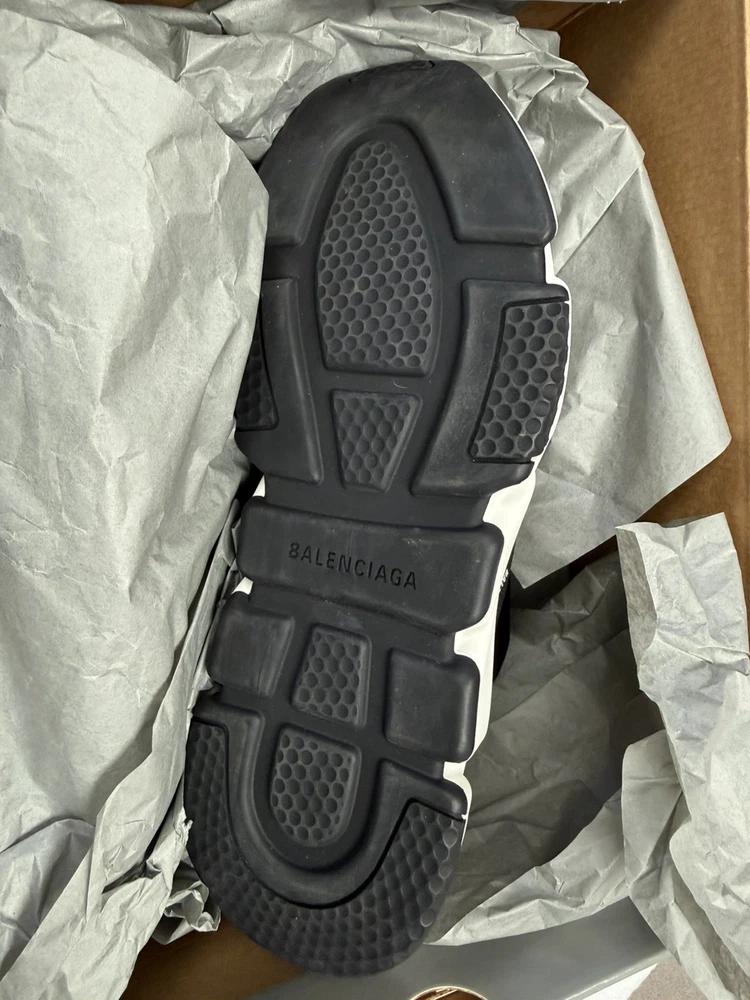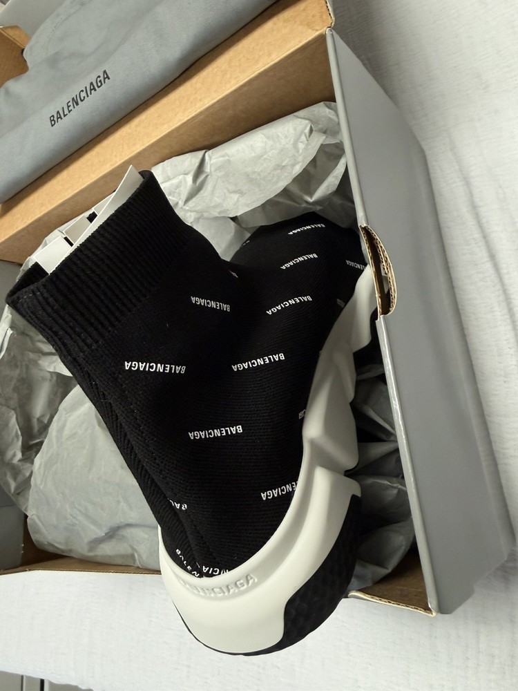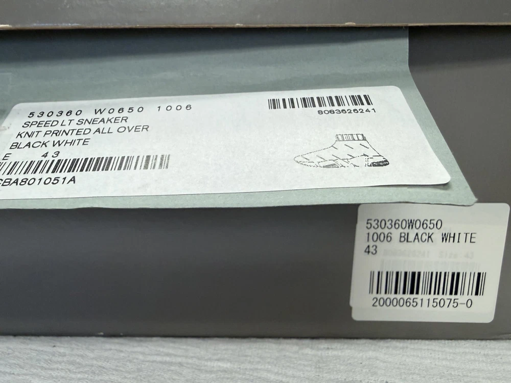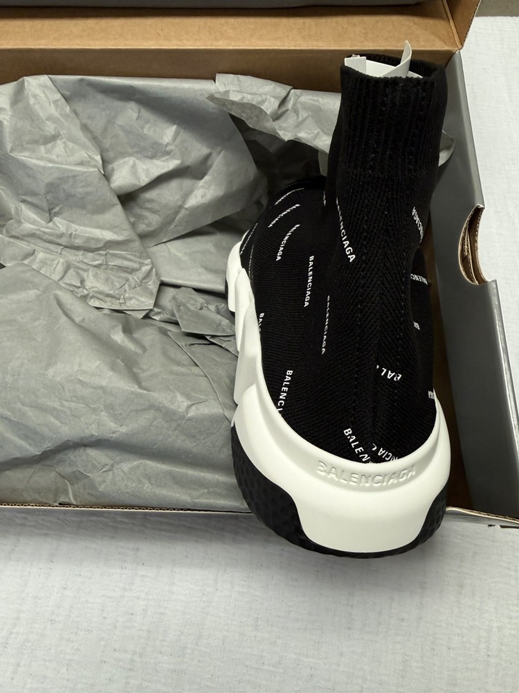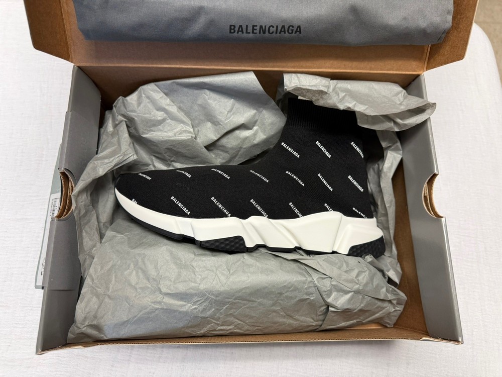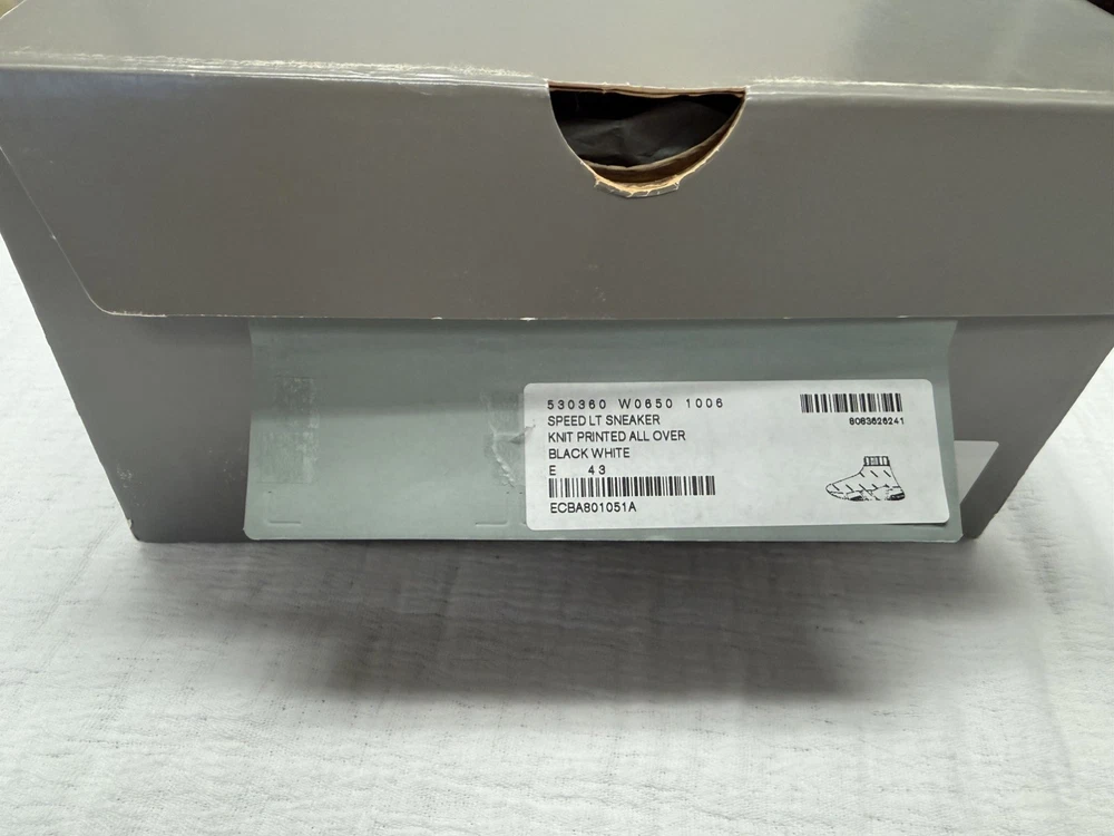 Authentic Balenciaga Speed Trainer in the Allover Logo Knit print. Size EU 43 / US 10.5 / 28.5cm Color: Black / White Allover Logo Condition: Like new – only tried on indoors Includes: Original box These were purchased new and only tried on. No heel drag, no sole wear, no stretching in the knit. Upper is clean and structure is intact. Essentially in near-new condition. The allover logo knit version is one of the more sought-after variations of the Speed Trainer silhouette and pairs easily with both streetwear and elevated fits. Feel free to message with any questions or for additional photos. Ships quickly and securely.