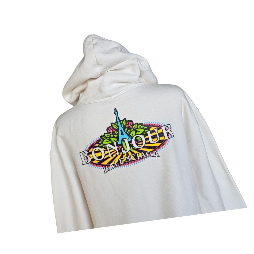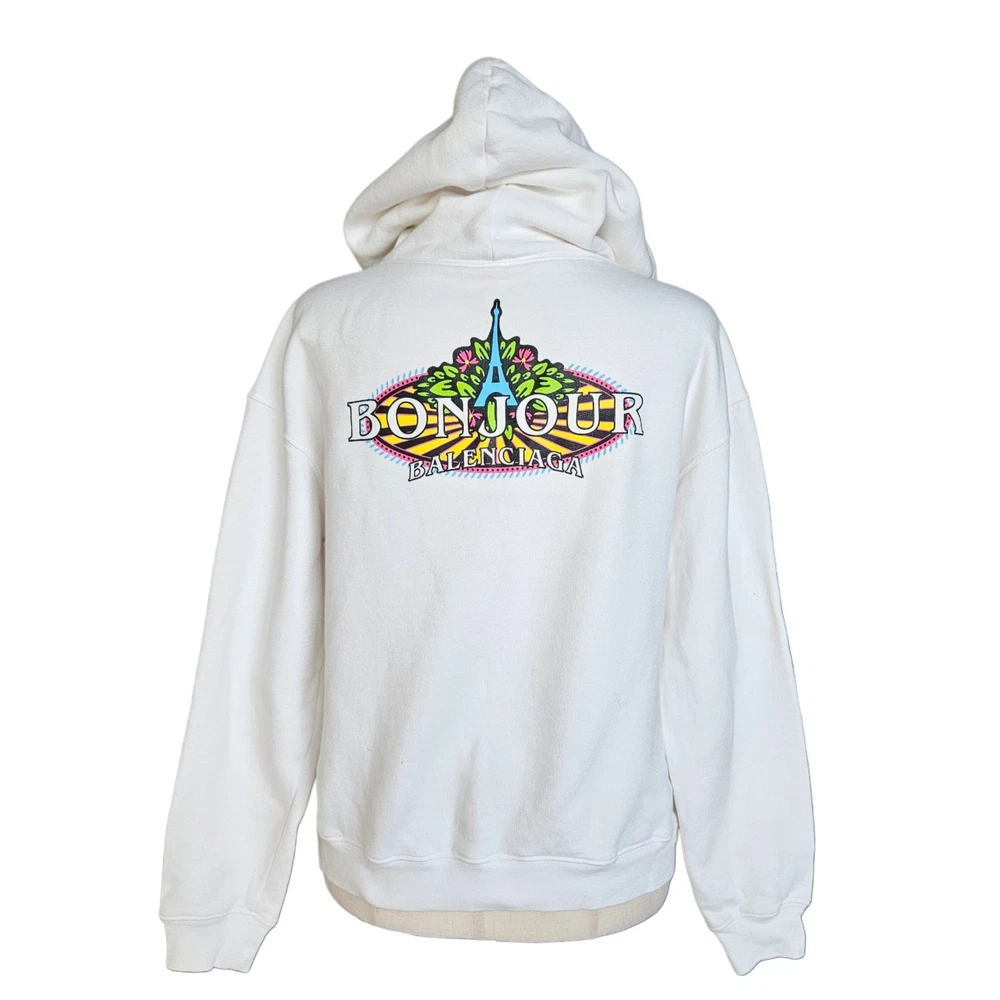 Balenciaga White Hoodie With Logo Patch Sweater Attributes Material: Cotton Color: White Size: Small Condition: Good condition