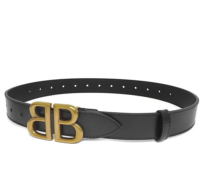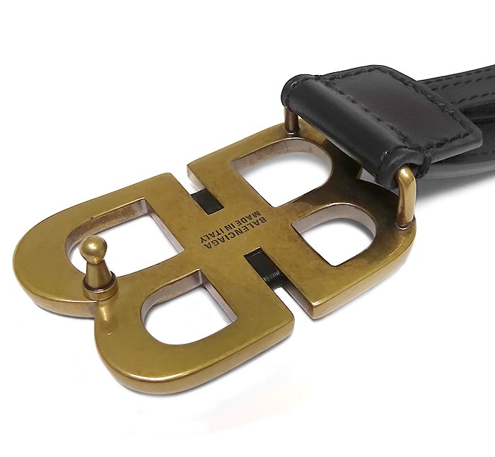 Balenciaga x Gucci black leather belt with logo buckle for high-waisted dresses