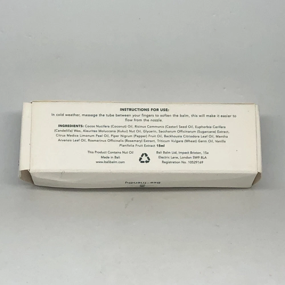 Bali Lip Balm 15ml Lemon & Black Pepper100% Vegan New In Box full size . Note: CONTAINS NUT Oil! Thank you for stopping by!
