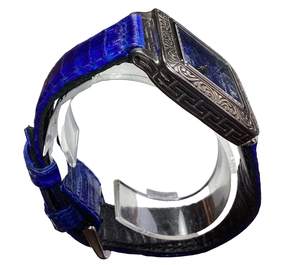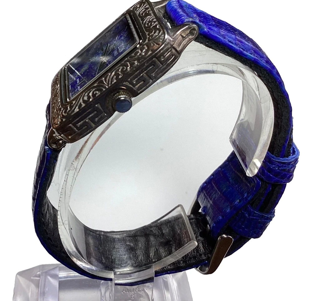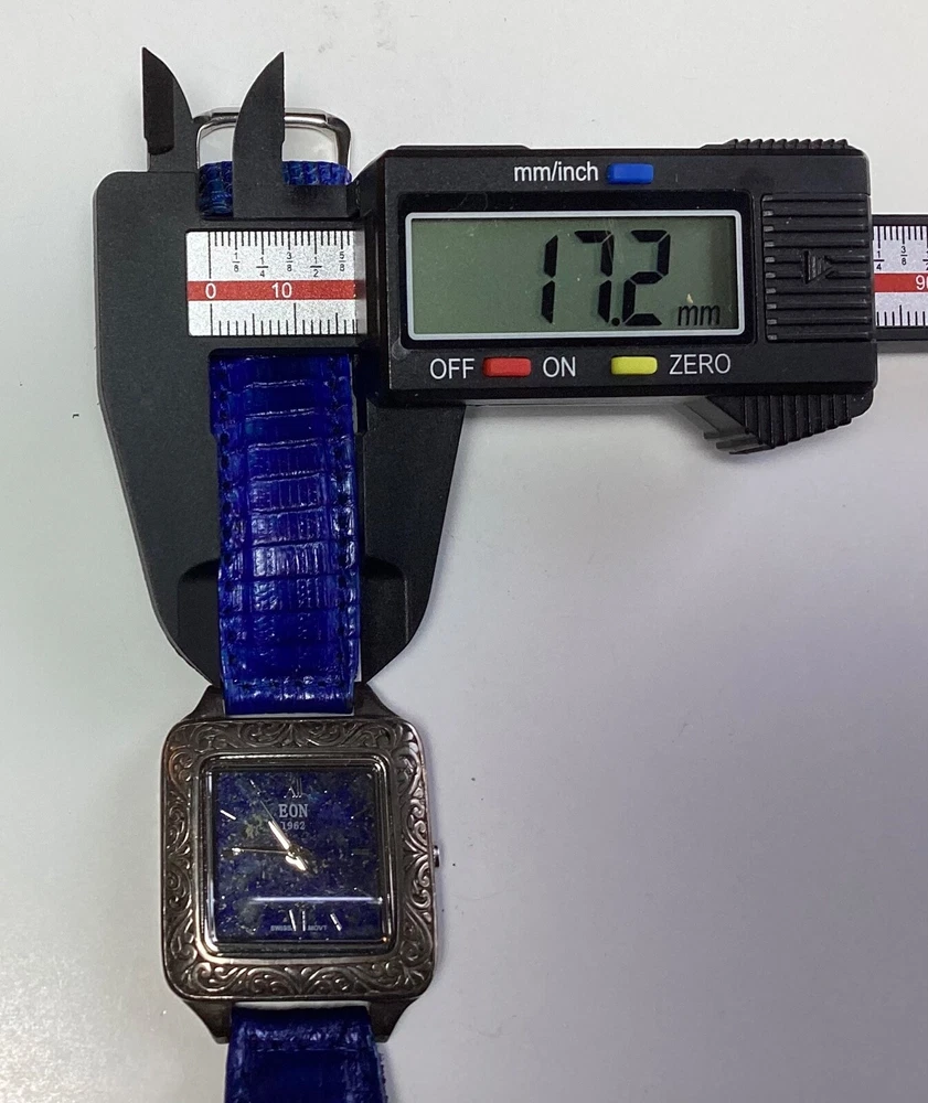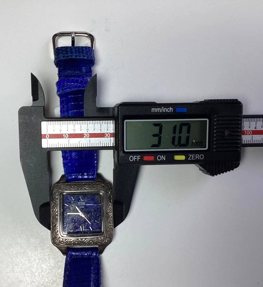 This stunning Bali Legacy Eon 1962 wristwatch is a perfect addition to any collection. Crafted with Swiss precision and attention to detail, this watch features a square shape with a fixed blue Lapis Lazuli bezel and Roman numeral indices. The watch is powered by a quartz movement and comes with features such as water-resistance up to 3 meters, a push/pull crown, and a two-piece leather strap with a buckle closure. The watch is made of sterling silver and has a silver case color with a snap caseback. It is suitable for women with wrist sizes between 7.26-7.5 inches and is perfect for any occasion, whether it's a formal dress or a casual day out. This watch is a true classic with a stylish twist, and it is sure to turn heads wherever you go. 1162