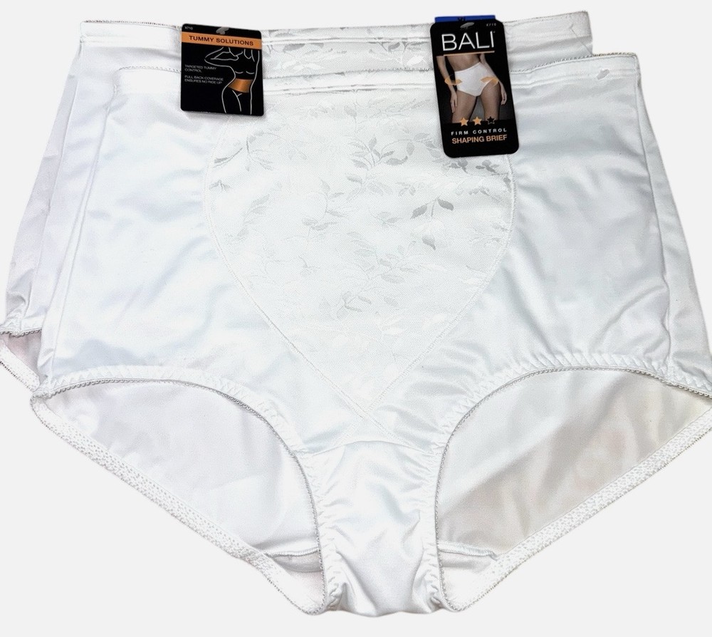 Bali Womens 2-Pack Shaping Brief Jacquard Mesh Tummy Panel FIRM Control White Size XL Women’s Size Available: X-LARGE/ 8 Body: 85% Nylon 15% Spandex Style: FIRM Control Shaping Brief TUMMY SOLUTION Retail Price: $37.00 + Tax Machine Washable Imported