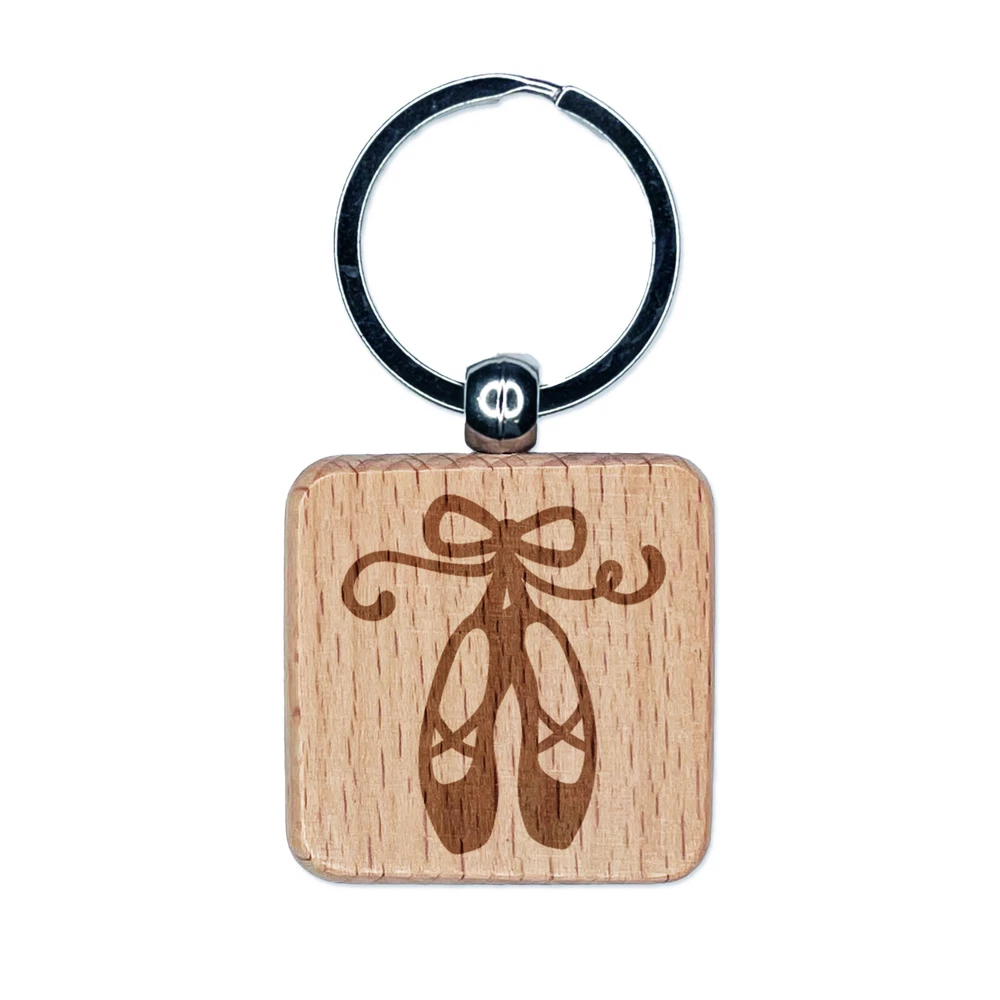Ballet Shoes Slippers Ballerina Engraved Wood Square Keychain Tag Charm