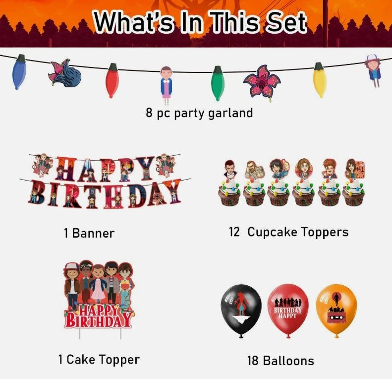 You may also like Non-slip thermal socks for women warm slippers Winter fleece-lined indoor thick 12.29 USD Free shipping Christmas tree personalized pendants 26 letters decoration letter 2025 Christmas 9.99 USD Free shipping New Pull Through Scarf Faux-Fur for Women With Hidden Zipper Pocket 17.99 USD Free shipping Faucet Hanging Strainer Basket Filter Basket Stainless Steel Swan Sink 10.79 USD Free shipping Jaw Opening Nail Clippers Slanted Nail Clipper Curved Anti-Splash Assart Wide 8.99 USD Free shipping Fishing Keep Net Durable Mesh for Bait Fish Crab Foldable Quick Driyng Nylon 11.99 USD Free shipping Product Description Stranger Things Birthday Party Decorations Set with Banner Balloon & Cake Topper Description Theme: Stranger Things Party Accessories Material: Paper Occasion : wedding decoration, festive festive supplies, home decoration, conference,Decoration, campus activities, party Condition:100% Brand new and high quality 【Stranger Things Theme】Inspired by the popular TV show, perfect for creating a thrilling birthday atmosphere. 【Complete Set】Includes birthday banner, large cake topper, 12 cupcake toppers, balloons, and ribbon for full decoration. 【Premium Materials】Balloons are made of 12-inch 2.8g latex, paper items are 250g cardstock – safe and eco-friendly. 【Two Set Options】Set A includes basic decorations, Set B includes additional paper garlands. 【Wide Applications】Great for kids, teens, fans’ birthday parties, themed events, or room decor. Product Details - Theme: Stranger Things - Materials: 250g cardstock (paper items), Latex (balloons) - Packaging: Individual OPP bag - Ideal For: Anime birthday parties, family events, school celebrations Package Include: SET A INCLUDES: 1 pc Paper Happy Birthday Banner 1 pc Large Paper Cake Topper 1 set of 12 pcs Paper Cupcake Toppers 1 set of 18 pcs Latex Balloons (6 Red, 6 Orange and 6 Black) 1 pc Ribbon String SET B INCLUDES: 1 pc Paper Happy Birthday Banner 1 set Paper Garlands 1 pc Large Paper Cake Topper 1 set of 12 pcs Paper Cupcake Toppers 1 set of 18 pcs Latex Balloons (6 Red, 6 Orange and 6 Black) 1 pc Ribbon String Note: 1. Please allow 0-1cm error due to manual measurement. 2. Due to different lighting during shooting, the color of the picture is slightly different from the actual product. Thank you! On 09-Oct-2025 at 14:48:44 BST, seller added the following information:
